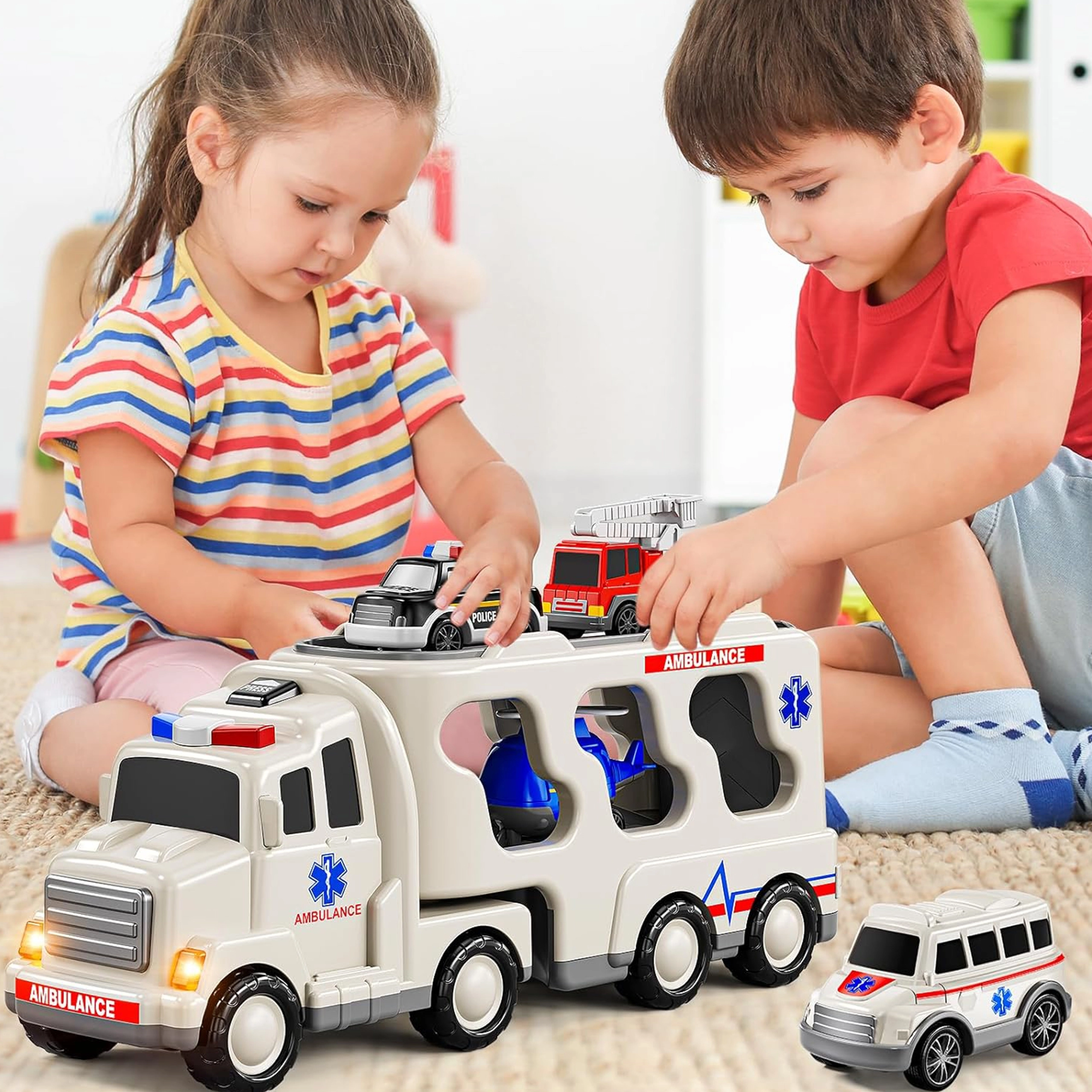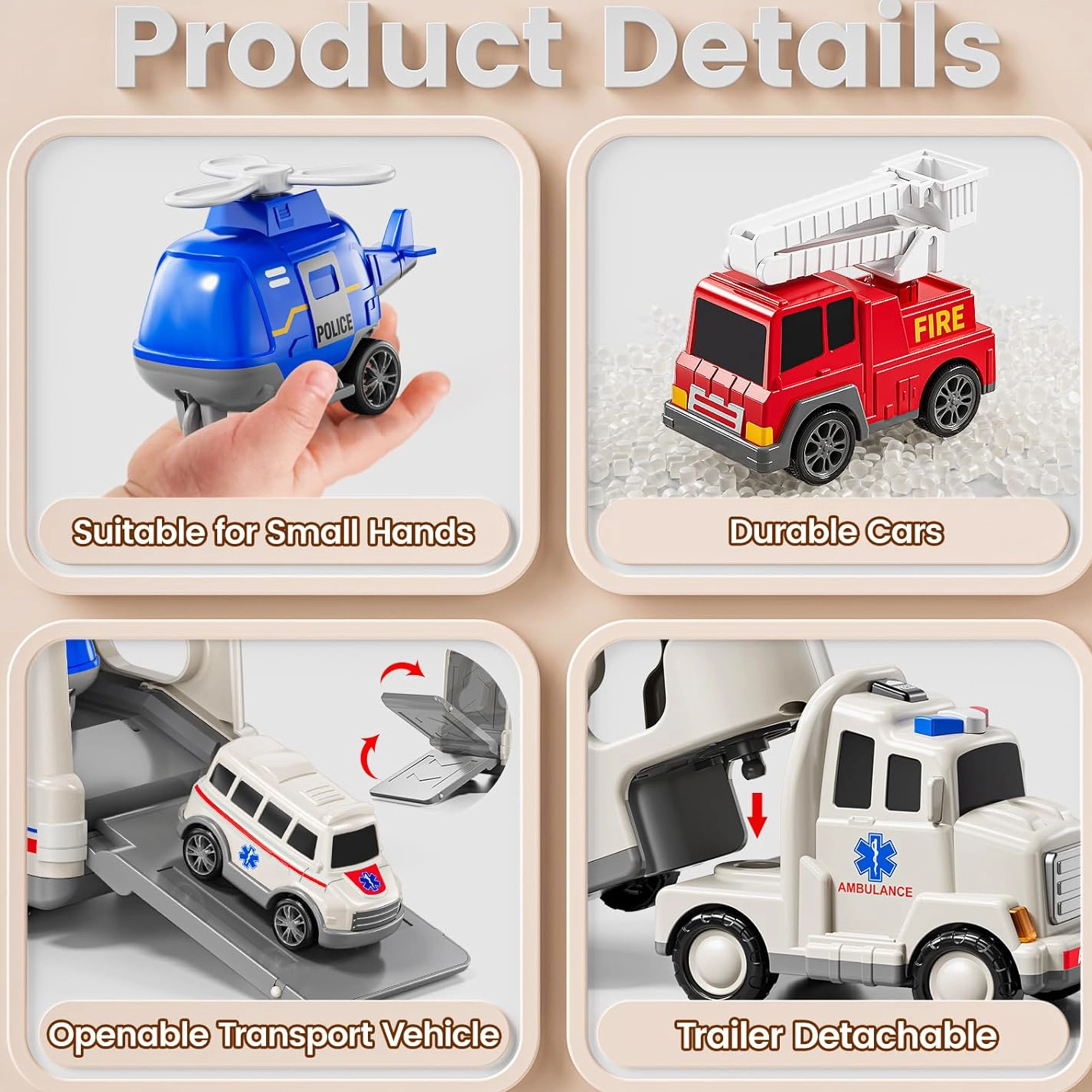 Suur transpordisõiduk mahutab tuletõrjeauto, politseiauto, politseihelikopteri ja kiirabi. Ideaalne erinevate päästestseenide harjutamiseks.