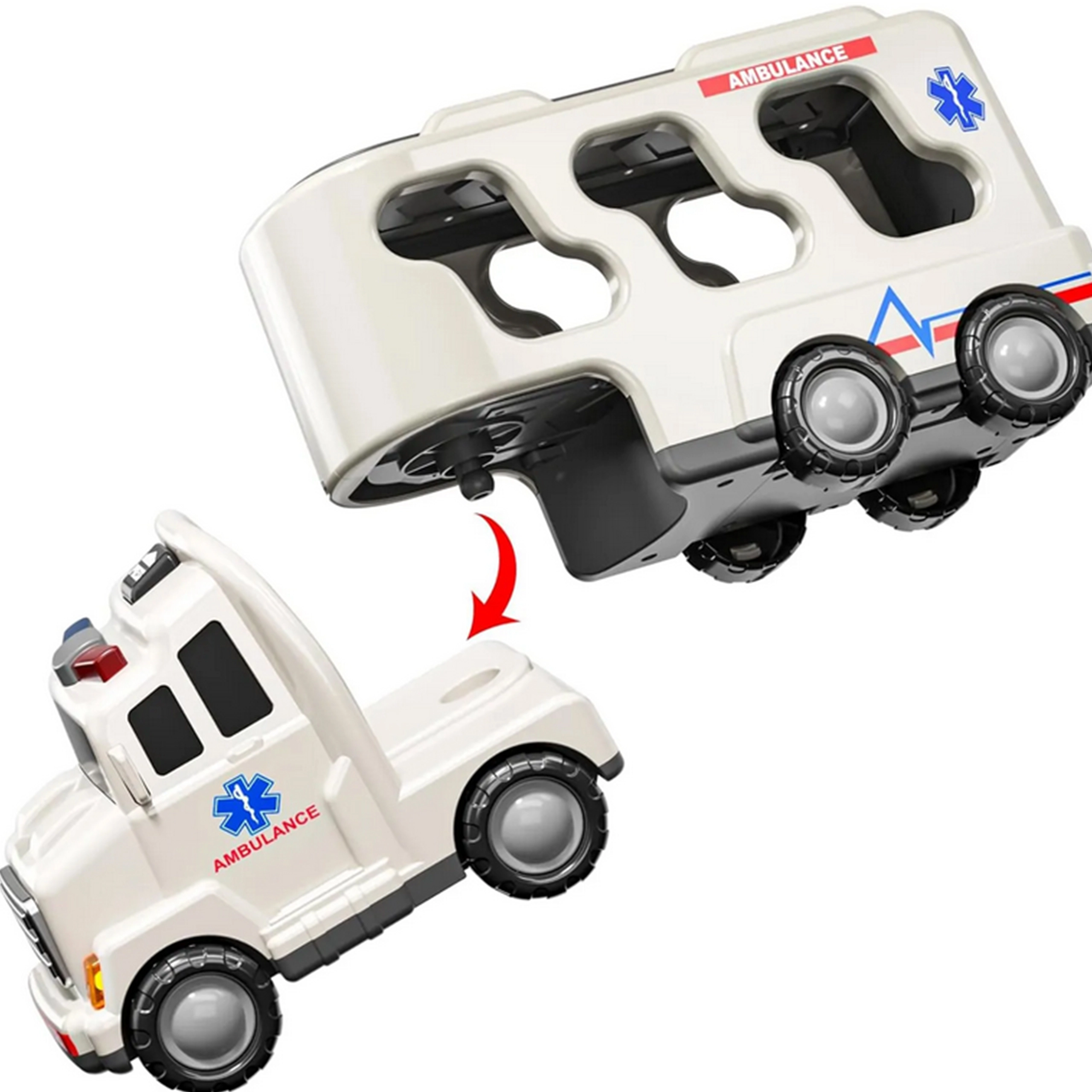 See interaktiivne päästekomplekt viib lapsed pärisväljakutsete maailma: suur transpordi kiirabi/veok-treiler veab ja hoiustab kogu üksust – tuletõrjeautot, politseiautot, politseihelikopterit ja kiirabi. Nupu vajutamisel katusel käivituvad valgusefektid ja sireenid, mis muudavad mängu veelgi kaasahaaravamaks.