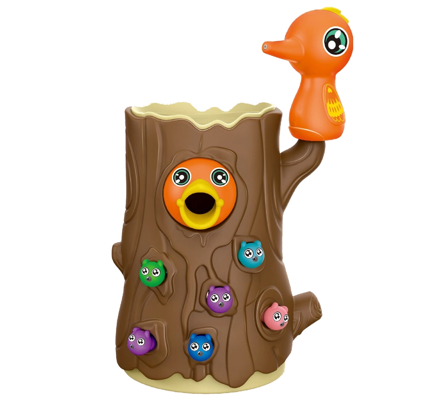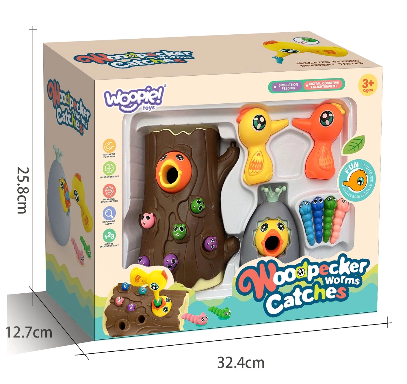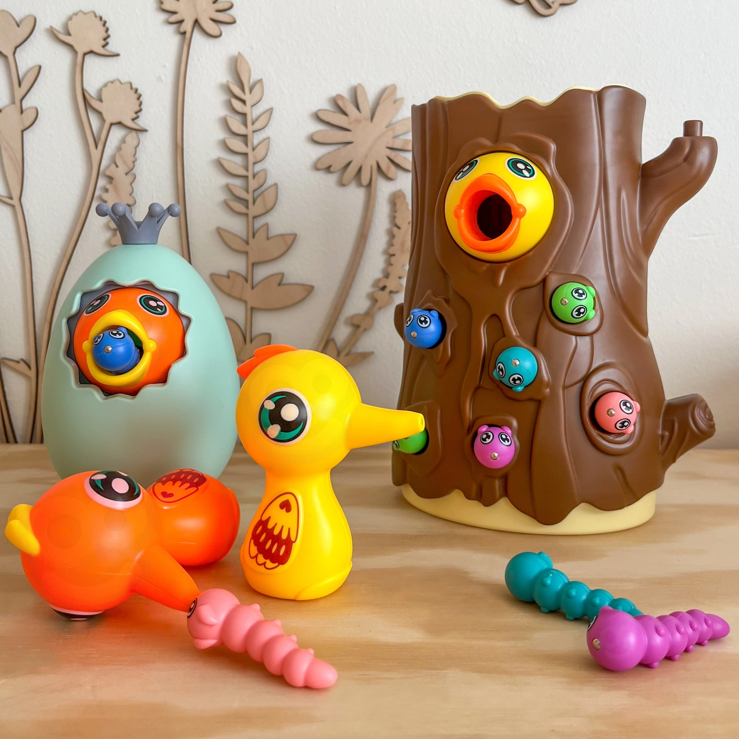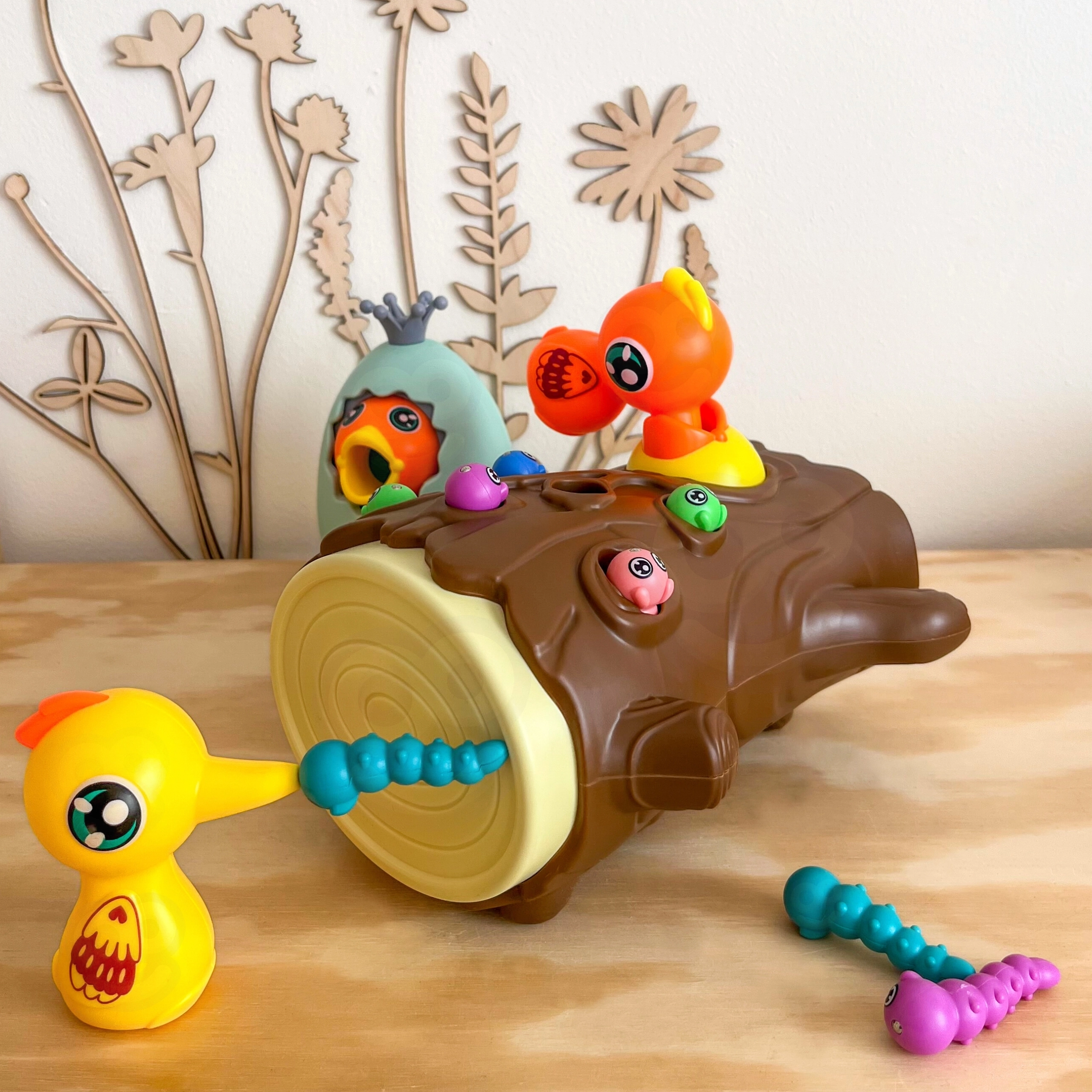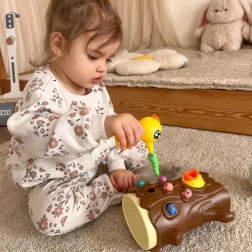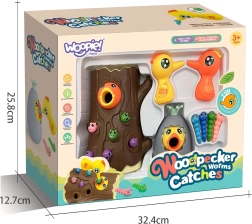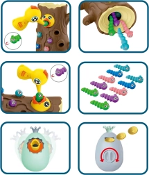 Lõbus magnetmäng 3-ühes kaubamärgilt WOOPIE ühendab õppimise läbi mängu ja terve pere lõbu. Lapsed „püüavad” magnetiliste nokkade abil ussikesi ja toidavad kännus pesitsevat linnupoega, arendades peenmotoorikat, silma–käe koordinatsiooni ja tähelepanuvõimet. Munakest saab kasutada nii rahakassana kui ka pöördkukutisena; mäng sobib kahele mängijale ning toetab suurepäraselt kannatlikkust ja täpsust.