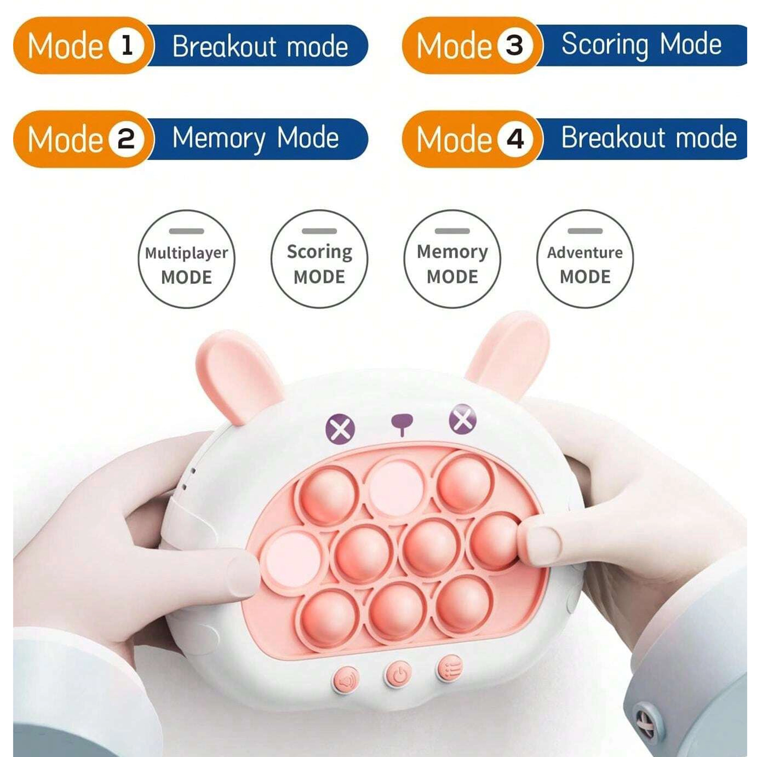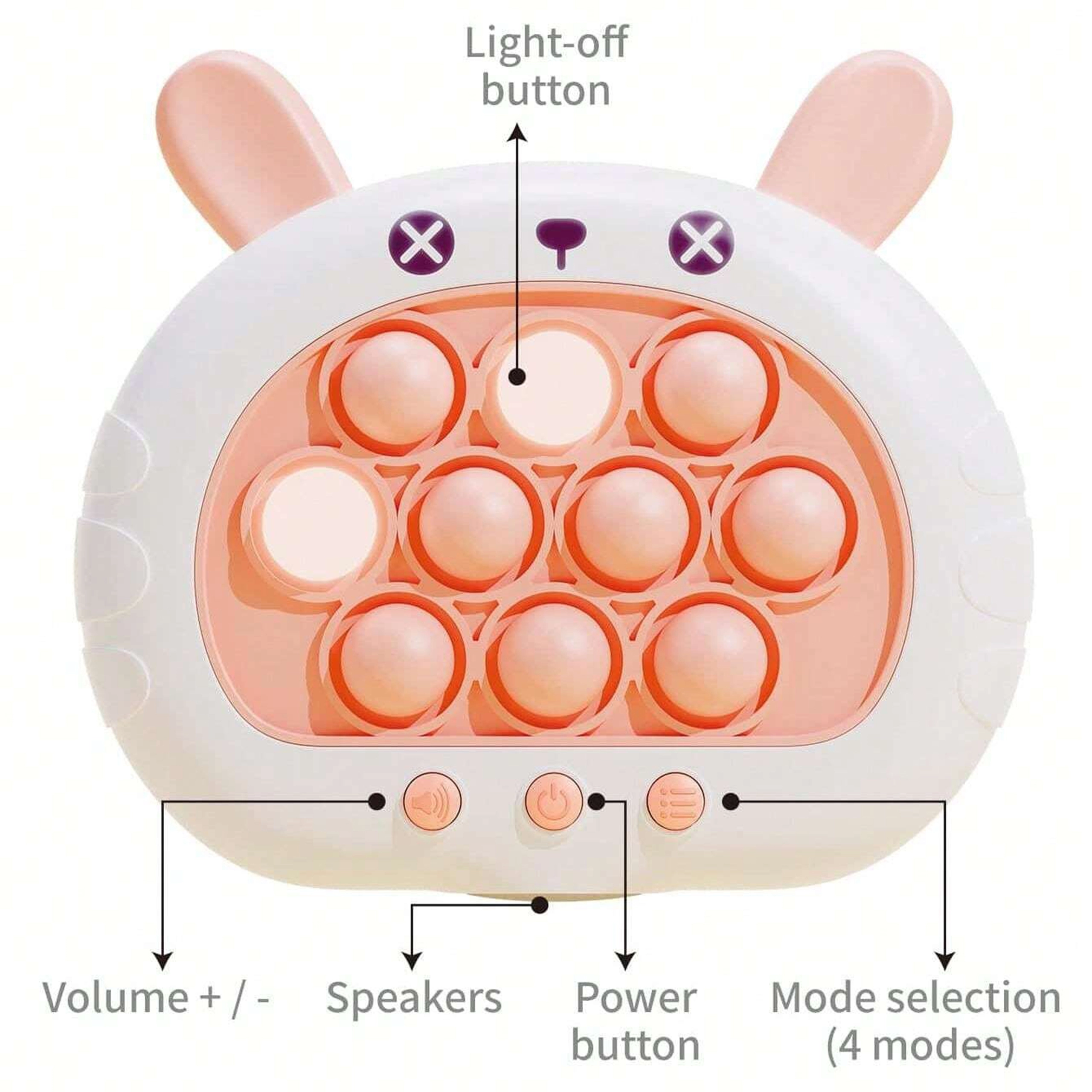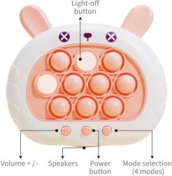 Lõbus ja interaktiivne mäng POP IT Jänku pakub rõõmu nii lastele kui ka täiskasvanutele. Arendab mõtlemist, käelist osavust, silma ja käe koordinatsiooni ning aitab stressiga toime tulla. See mänguasi pakub nelja erinevat mängurežiimi, mis hoiavad kõik põnevuses.