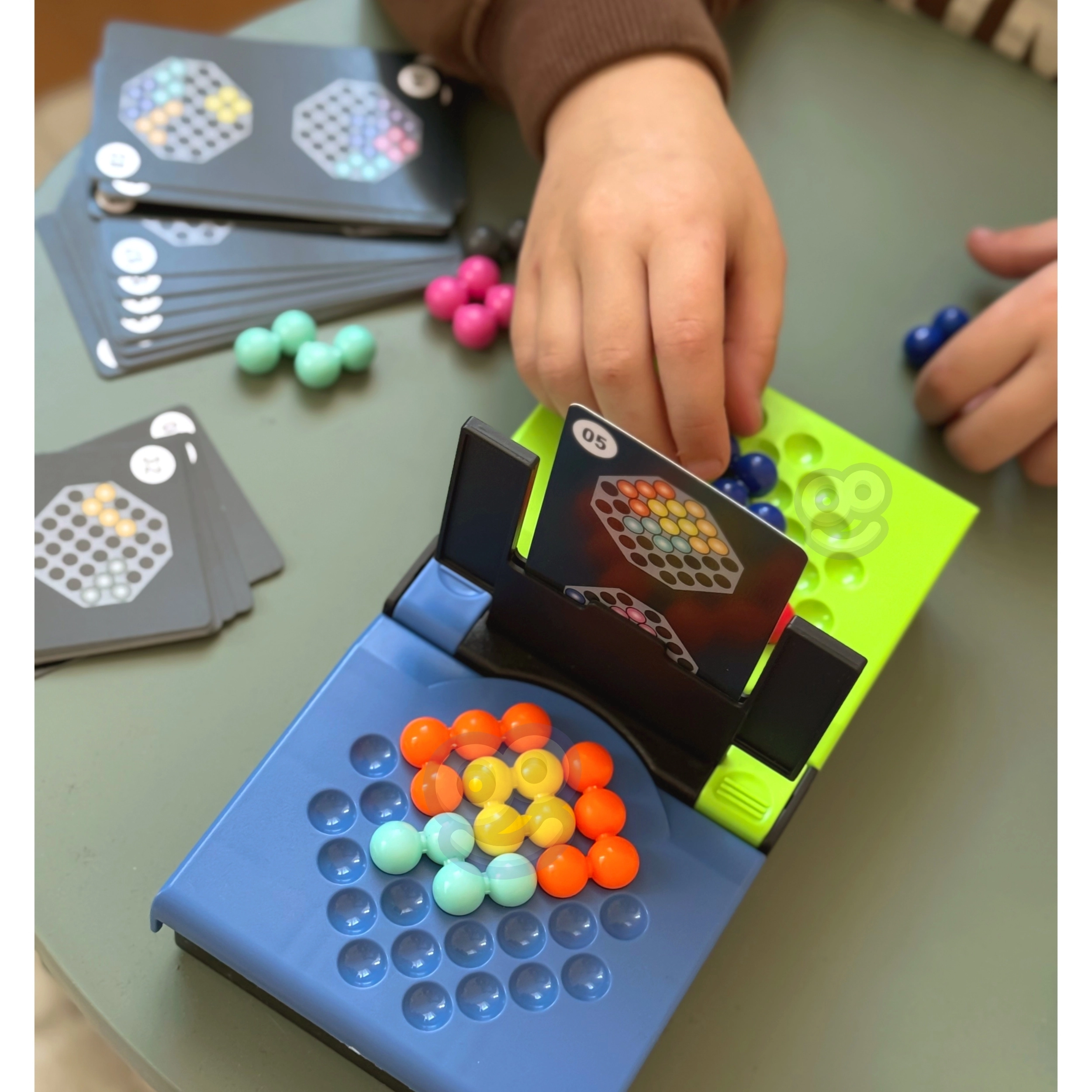 - Oma värviliste kuulide hulgast püüavad nad võimalikult kiiresti kokku panna kaardil näidatud mustri