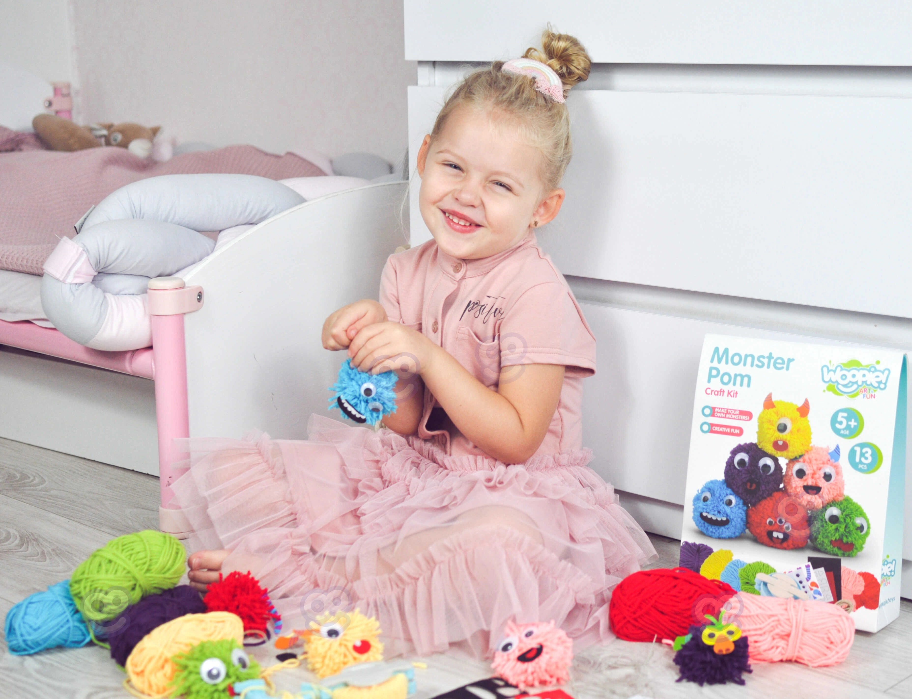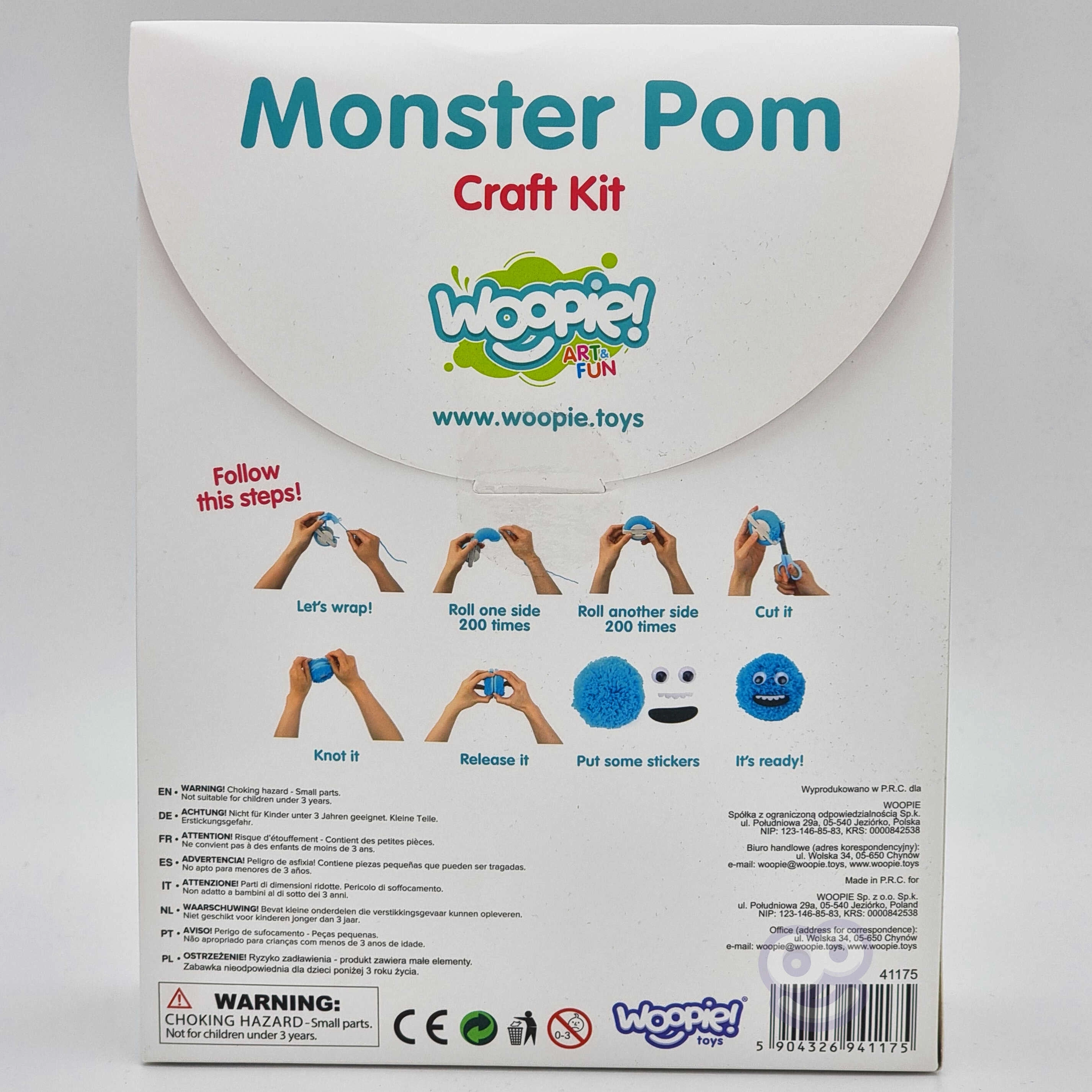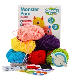 Avasta lõputud võimalused oma koletiste loomiseks Monster Pom loomingulise komplektiga! Lapsed saavad selle komplektiga meisterdada ja luua oma fantaasia järgi. Spetsiaalse pomponimasina ja värviliste lõngade abil tehakse põhikuju, mis seejärel täiendatakse silmade, sarvede ja muude kleepsudega. Meisterdamine on mitte ainult lõbus, vaid toetab ka laste peenmotoorikat ja loovust. Koos sõpradega saavad lapsed luua oma koletiste armee ja välja mõelda nende lood.