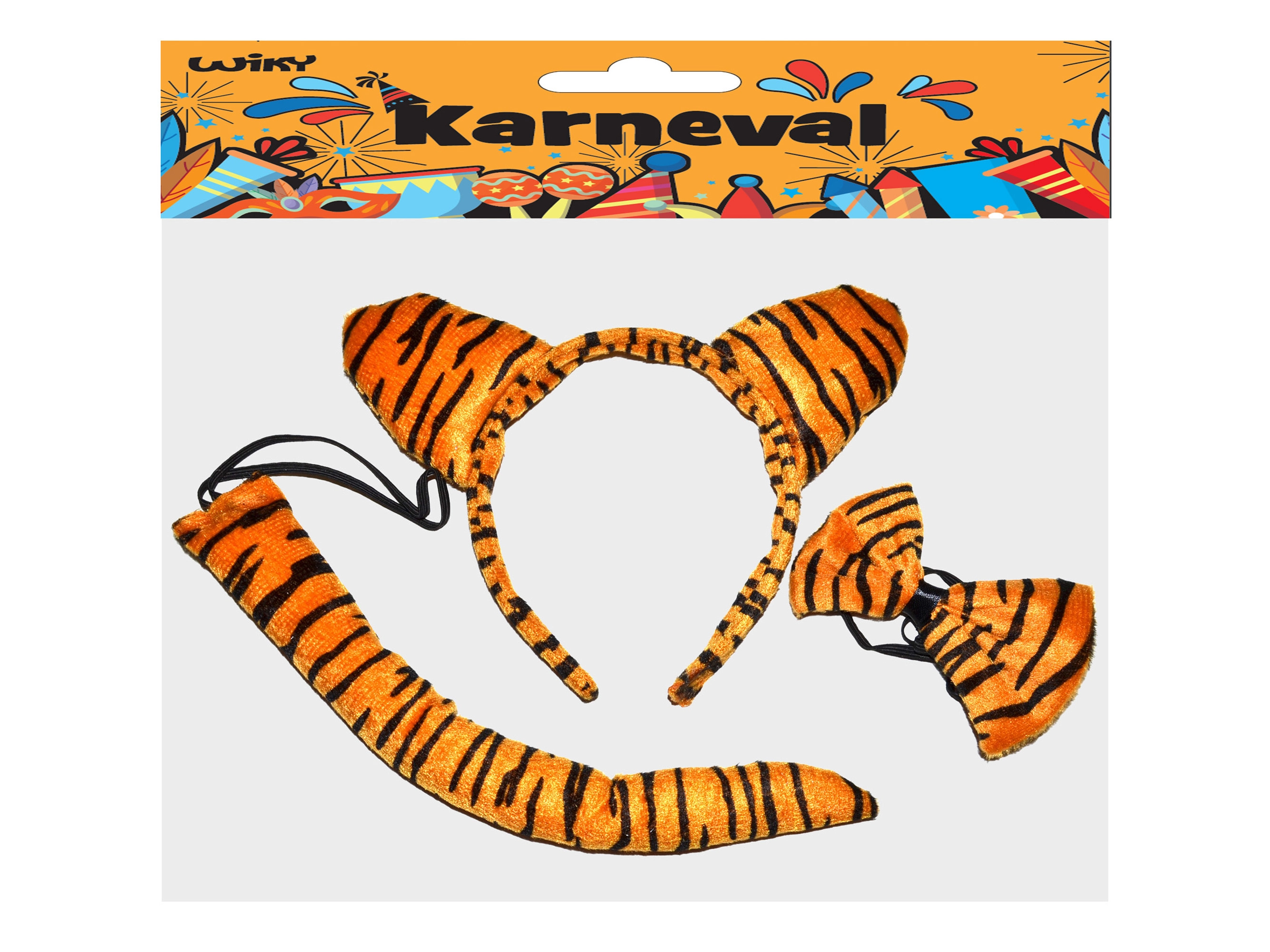 Selle lustaka komplektiga pälvite hõlpsalt tähelepanu igal peol. Kerge ja mugav peavõru kõrvadega, stiilne lipsuke ning saba loovad hetkega vahva tiigrikostüümi, mis sobib suurepäraselt mis tahes rõivastusega.