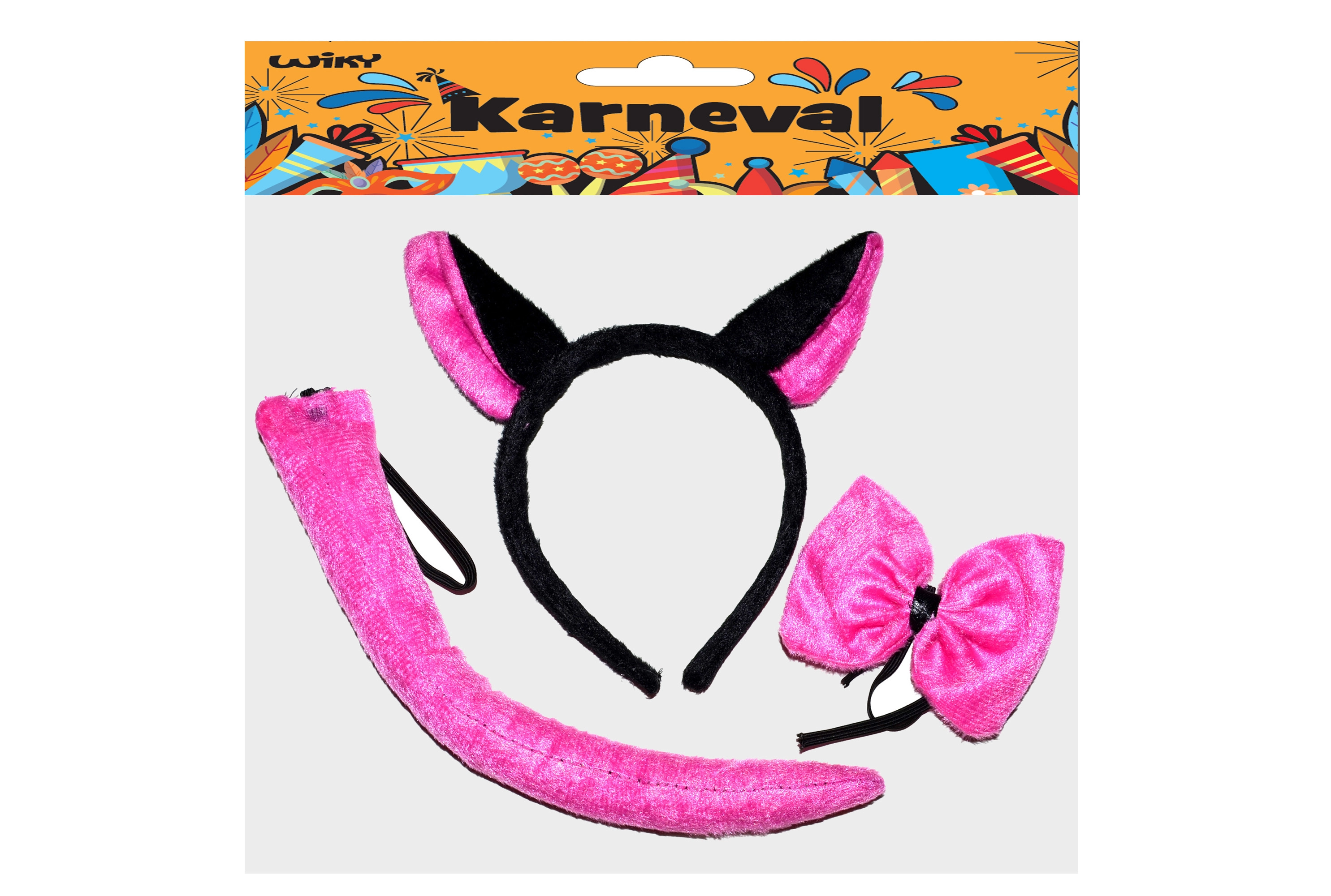 Komplektist leiad kõik vajaliku: peavõru kassikõrvadega, elegantse kaelalipsu ja sobiva saba. Aksessuaare on lihtne kombineerida musta T-särgi ja retuusidega – valmis paari minutiga.