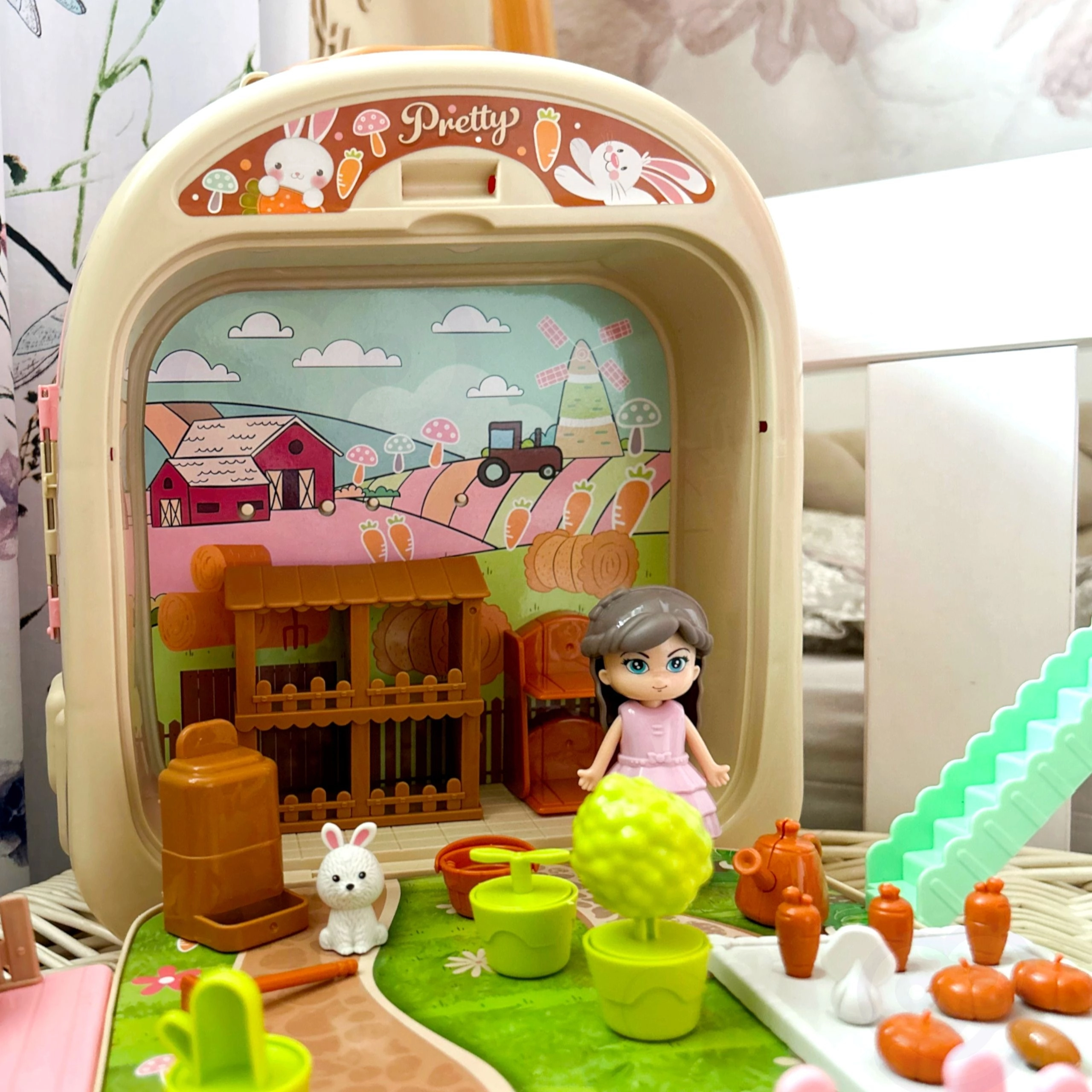 Lapsed saavad mängida farmerit selle armsa komplektiga, mis sisaldab erinevaid farminduse ja jänkude eest hoolitsemise elemente.