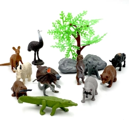 Komplektis on 12 loomafiguuri, mida täiendavad puu ja 2 kivi, nii et on lihtne luua mini-stseene ja lugusid. Praktiline ämber/kopp toimib hoiukastina – lapsed saavad komplekti kõikjale kaasa võtta ja pärast mängu kiiresti ära panna.