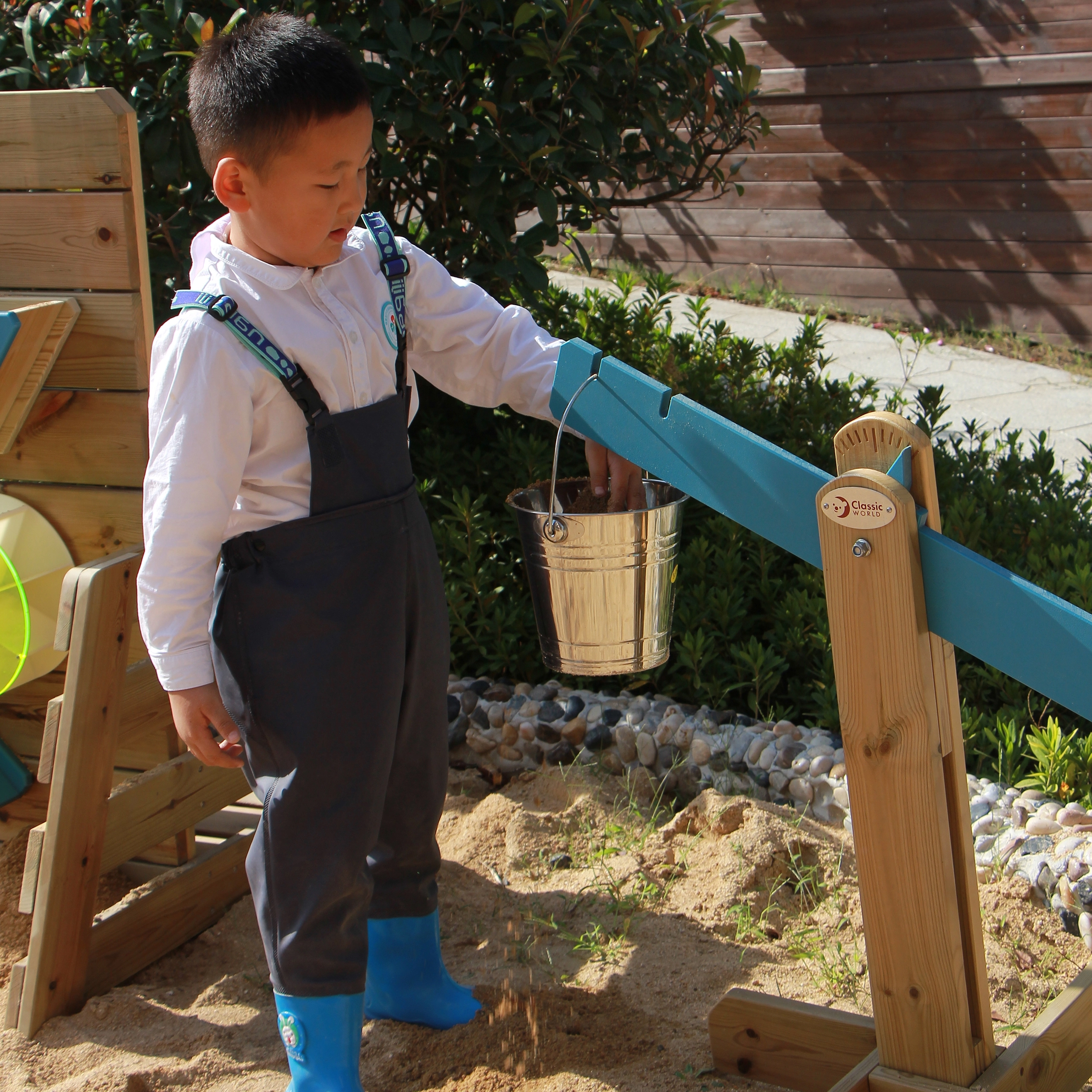 Valmistatud looduslikust puidust ja töödeldud ohutu, mittetoksilise immutusega, on see suurepärane valik õuemänguks. Sobib liivakasti, aeda ja terrassile. Tänu vastupidavale teostusele ja lihtsale tasakaalupõhimõttele meeldib see lastele alates 3. eluaastast.