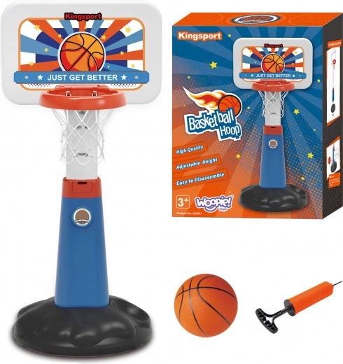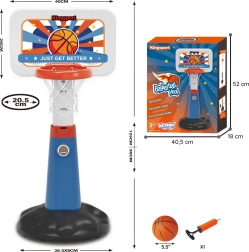 Komplekt sisaldab korvilauda koos rõngaga, palli ja pumpa – kõik, mida laps mänguks vajab.