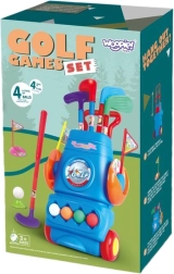 Woopie laste golfikomplekt on suurepärane viis veeta aega mitte ainult aias, vaid ka kodus. Toode sobib lastele alates 3. eluaastast ning sisaldab 4 golfikeppi, 4 palli erinevates värvides ja kahte auku koos lippudega. Mugavaks transpordiks on komplektil praktilised rattad.