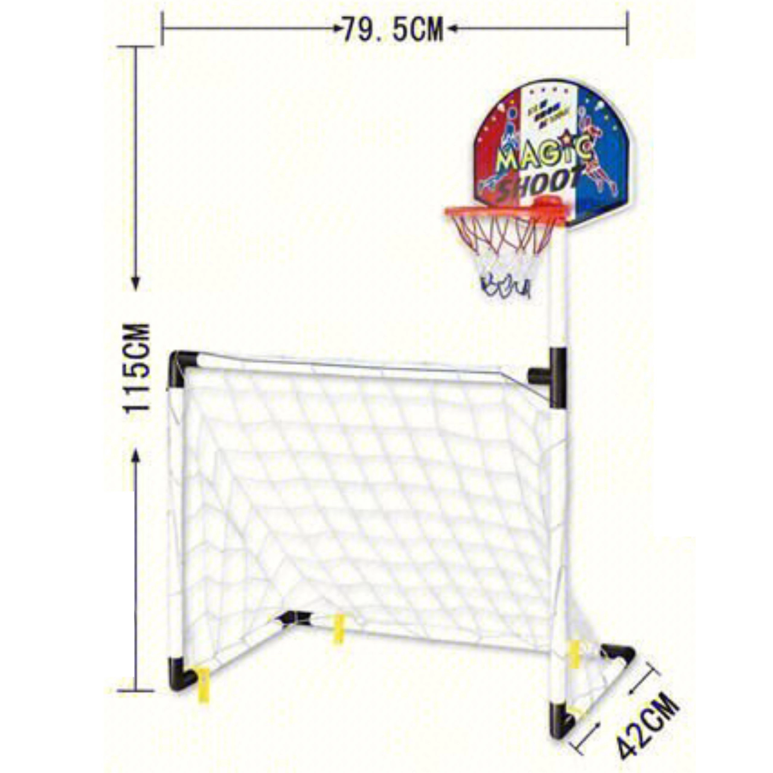 - 2-ühes – täielik spordikomplekt: korvpall + jalgpallivärav + pall