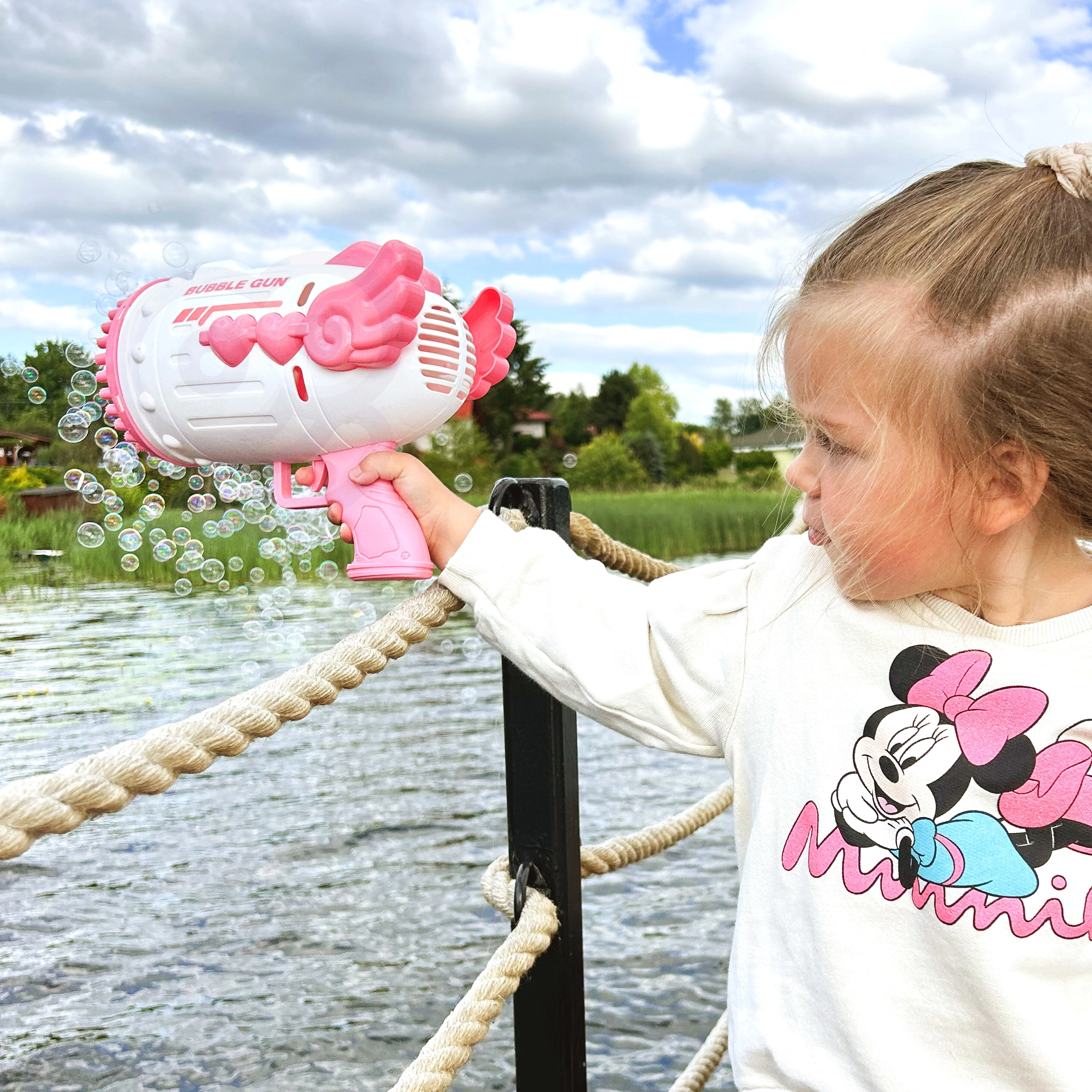 Võimas otsik 91 düüsiga loob ühe vajutusega sõna otseses mõttes mullipilve – ideaalne nii õuemänguks kui kodusteks pidudeks.