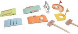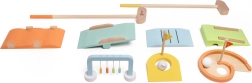 See kvaliteetne puidust minigolfikomplekt on valmistatud mittetoksilisest ja vastupidavast puidust. Tänu lihtsale ülesseadmisele saate mängida kõikjal – elutoas, lastetoas või aias. Värvilised takistused ja lihtsad reeglid köidavad nii algajaid kui ka väikeseid sportlasi.