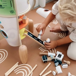 Mänguasi on valmistatud peamiselt puidust, täiendatud kvaliteetse plastiga ja viimistletud mittetoksilise lakiga. See on vastupidav, esteetiliselt viimistletud ning mõeldud pikaajaliseks mänguks lastetoas. Toetab kujutlusvõimet, loovust ja peenmotoorikat.