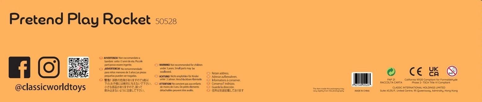 Avasta fantaasiamaailm selle CLASSIC WORLD puidust raketiga – suur, värviline ja läbimõeldud mänguasi alates 3. eluaastast. See pakub mitmekorruselist kosmosejaama ruumidega, mis arendavad loovust, peenmotoorikat ning värvide ja kujundite tundmist. Tugev puidust konstruktsioon, plastdetailid ja mittetoksiline lakk tagavad ohutu ja vastupidava mängu.