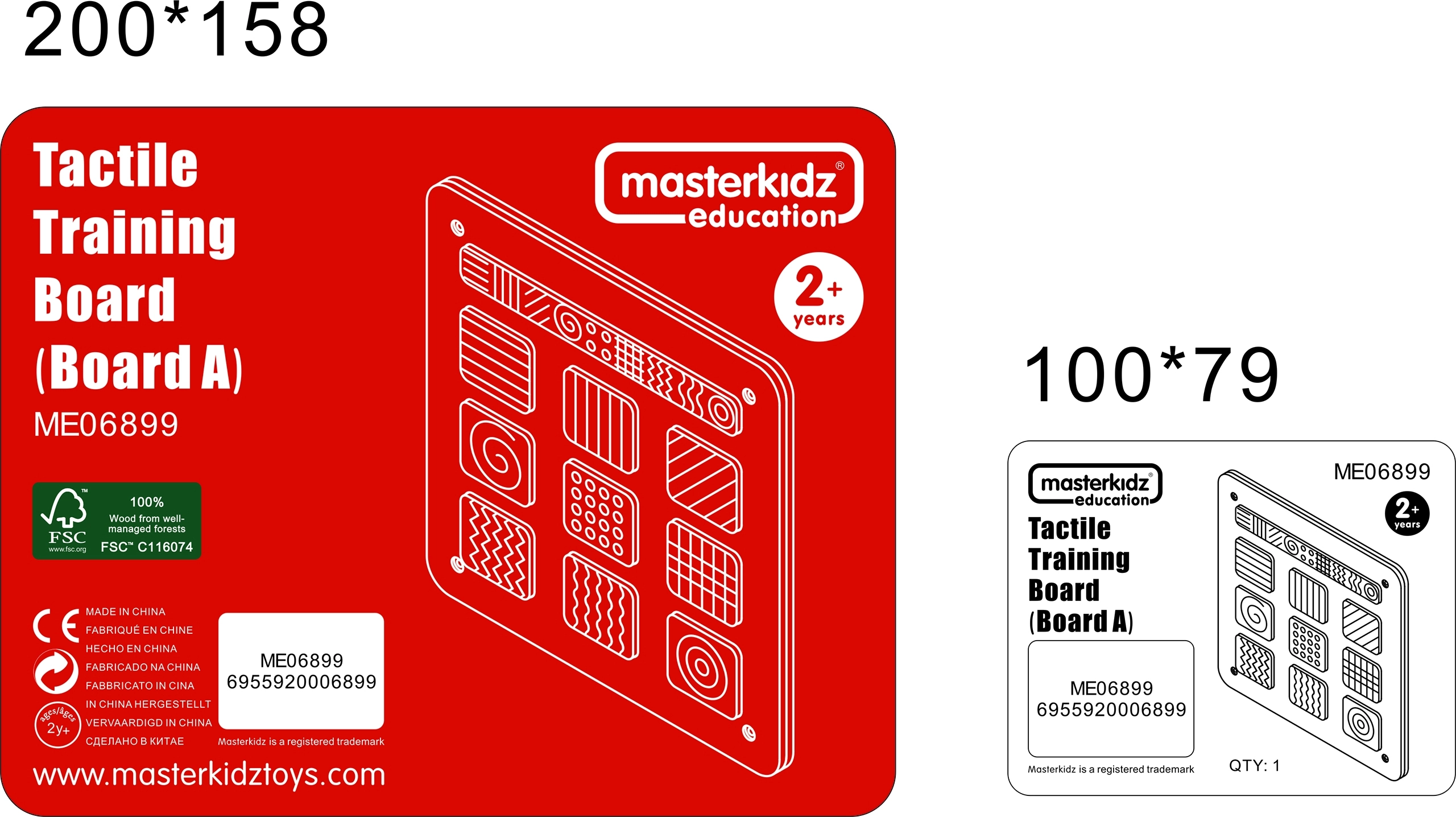 Tahvel sisaldab 9 tekstuuripaari selgelt eristuvate mustritega, mis toetavad õppimist läbi mängu. Tänu tugevale puidust teostusele on see vastupidav ja sobilik koju, lasteaedadesse, lastenurkadesse ning teraapiakeskustesse. Paigaldus on paindlik – seinale, Masterkidz Flex süsteemi või vabaltseisvale statiivile.