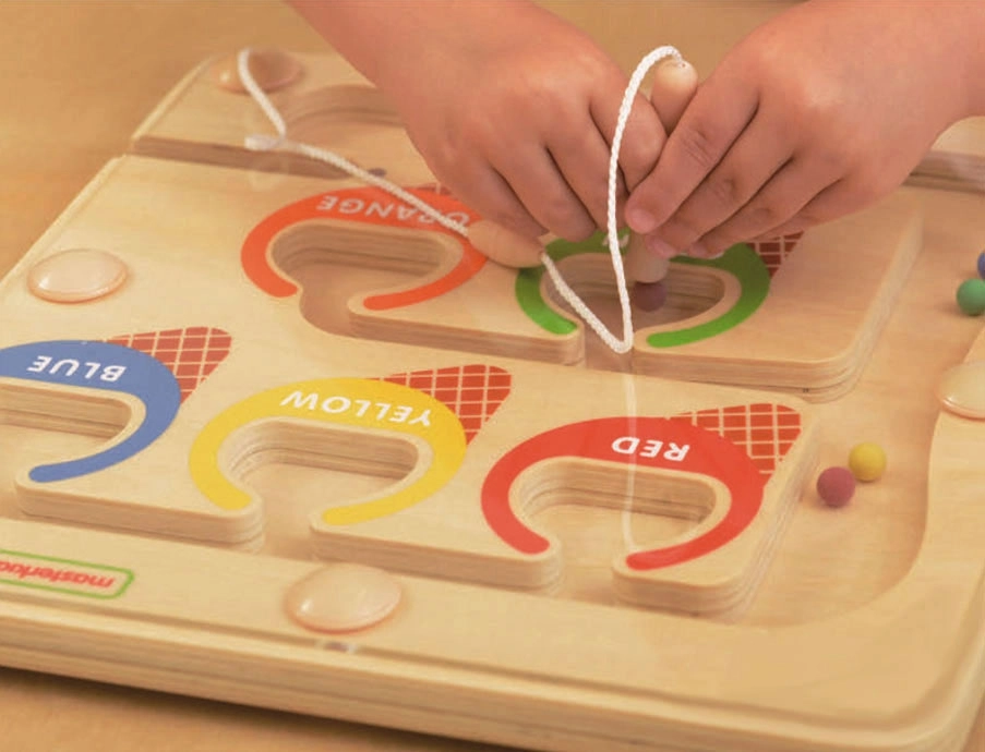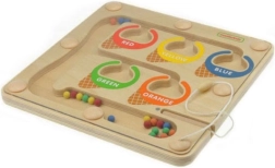 Suletud konstruktsioon läbipaistva kattega on turvaline ja vastupidav – kuulikesed püsivad sees ega lähe kaduma. Lapsed harjutavad peenmotoorikat, koordinatsiooni, kannatlikkust ja kontsentratsiooni, liigutades kuulikesi radadel värvides punane, kollane, sinine, roheline ja oranž.