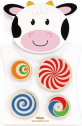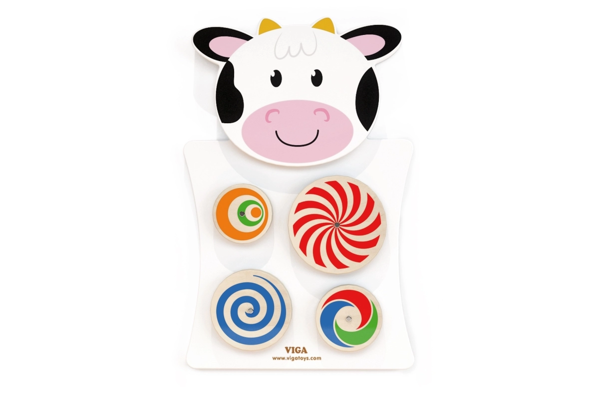 Puidust VIGA lehmakujuline manipuleerimistahvel pakub lastele lõbusat õppimist. Pöörlevad mustrilised kettad arendavad peenmotoorikat, loogilist mõtlemist ja visuaalset taju. Pind on kaetud ohutute, mittetoksiliste värvidega erksates toonides ning puit pärineb FSC-sertifitseeritud allikatest.