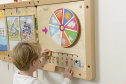 Pööratava ratta ja liuguri abil saavad lapsed tundma õppida erinevaid ilmastikutingimusi ning seda, mida nende puhul on sobiv selga panna.