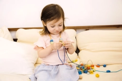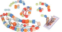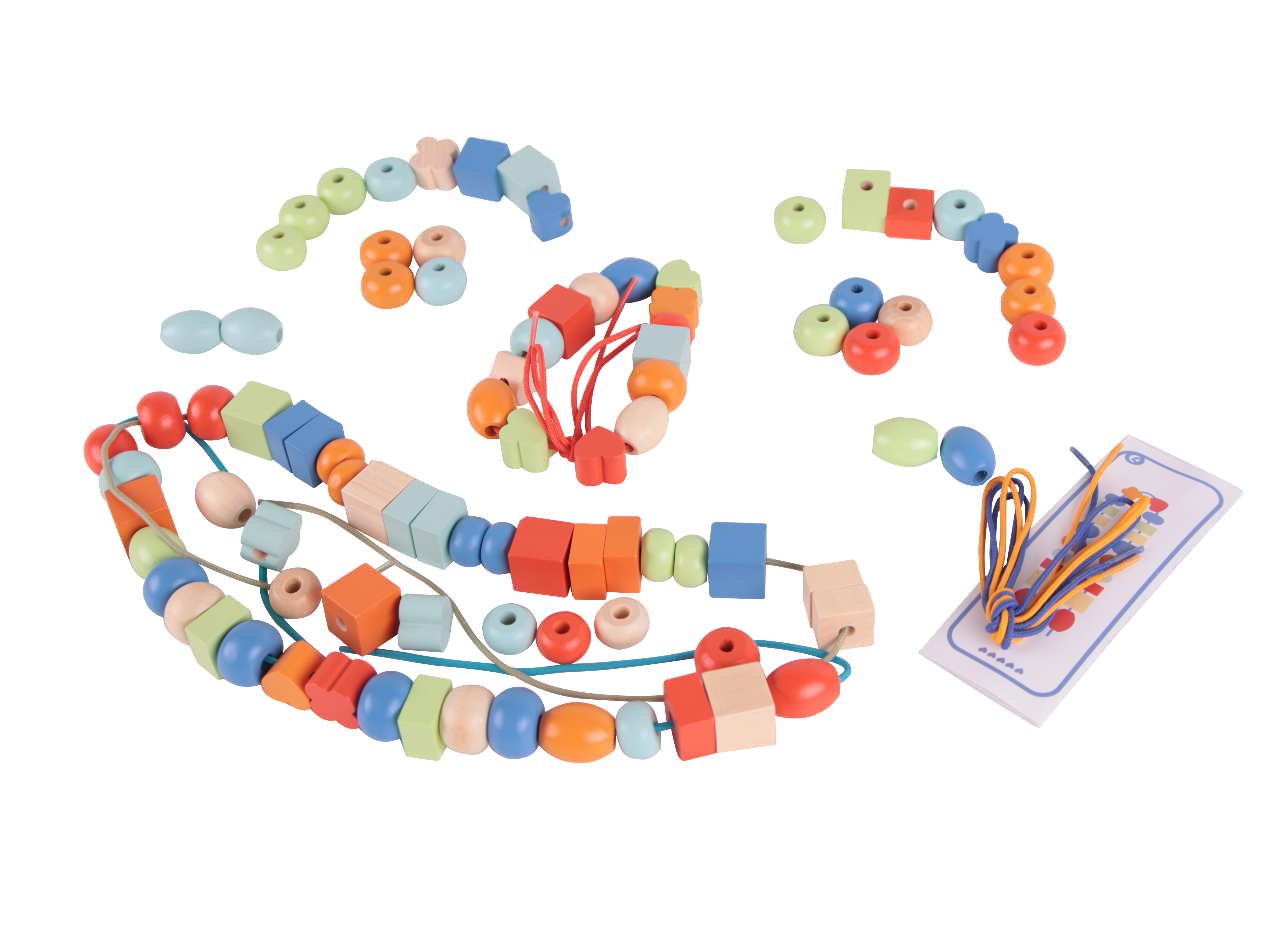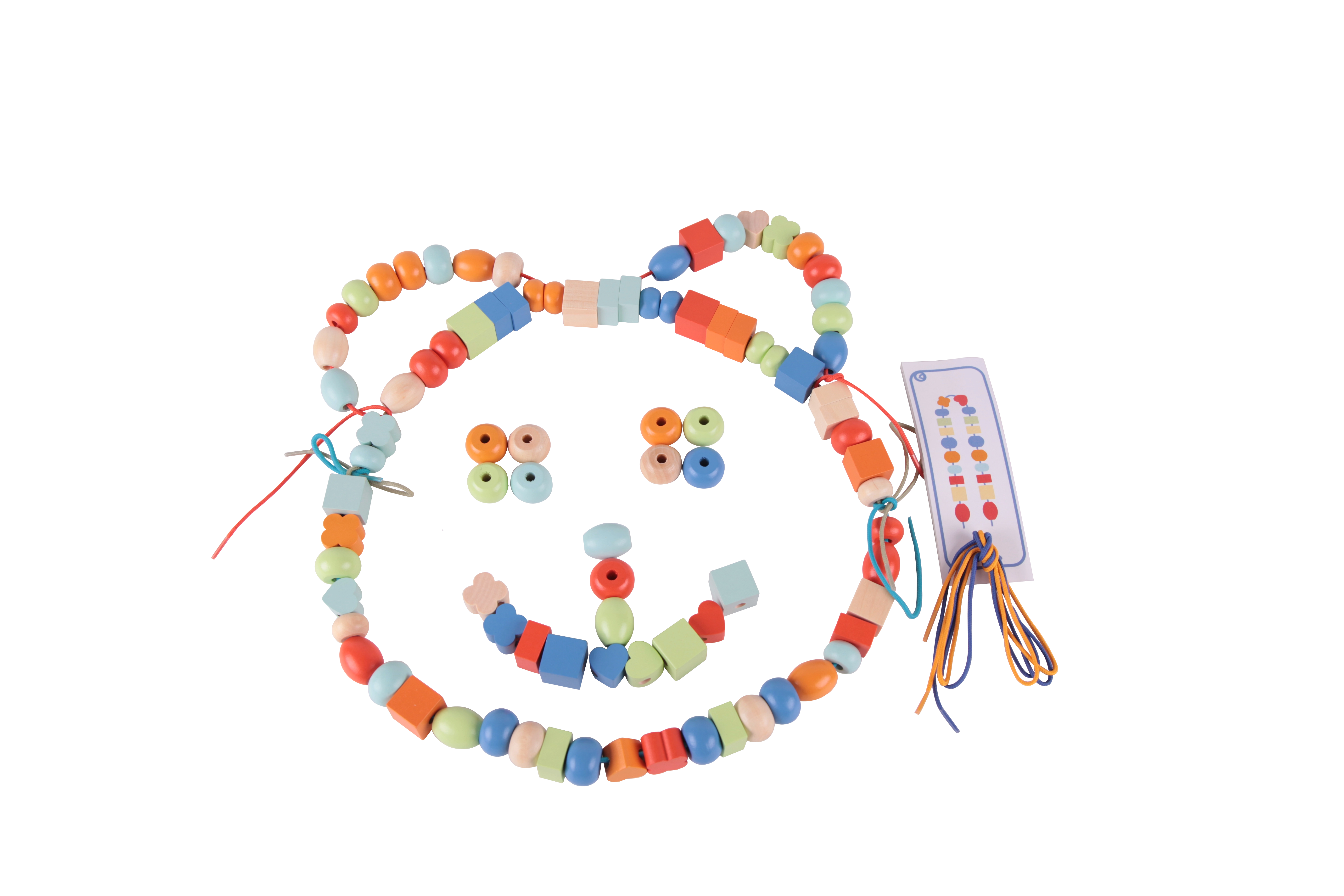 Värvilised puidust helmed eri kujude ja toonidega arendavad laste peenmotoorikat ja loovust.
