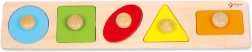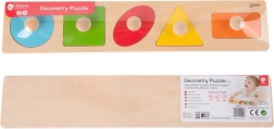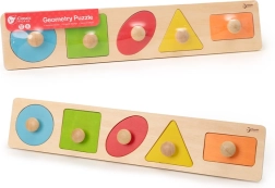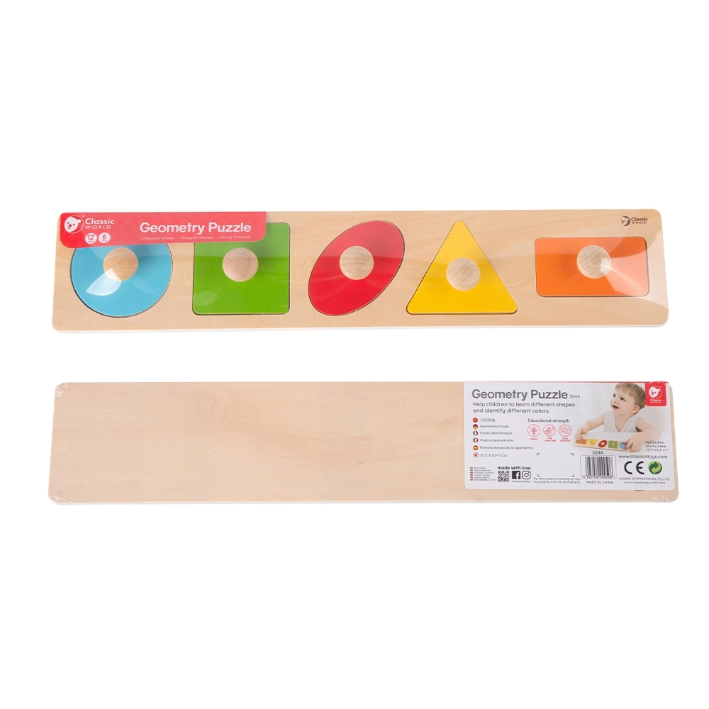 Classic Worldi puidust pusle on loodud lastele alates 12. elukuust. Mänguasi sisaldab tahvlit väljalõigatud kujunditega ning 6 tappidega pusletükki, mis vastavad tahvli kujudele. Kõiki tükke on tänu väikestele tappidele lihtne haarata.