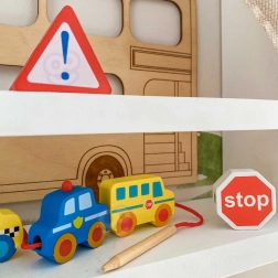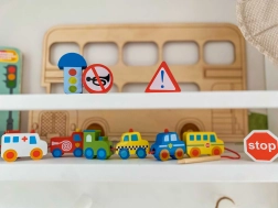 See loominguline komplekt pakub alates 2. eluaastast lastele rõõmu lükkimisest ja sobitamisest. Tänu erksatele värvidele ja erinevatele sõidukikujudele õpivad väikesed käed täpsust ja kannatlikkust, samal ajal kui lapsed omandavad mänguliselt liikluskasvatuse põhialuseid. Looduslik puit ja siledad servad tagavad meeldiva ja ohutu puudutuse.