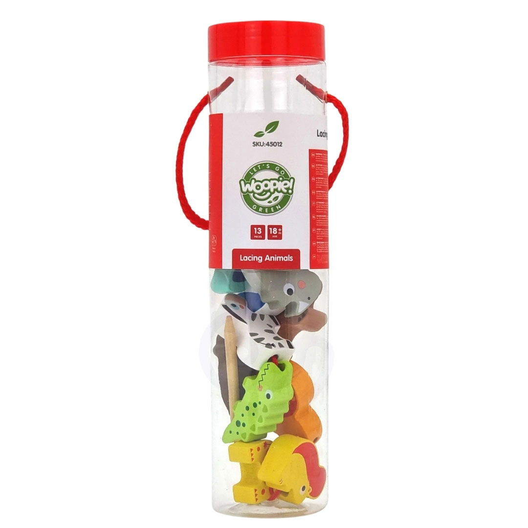 Avastage mänguline WOOPIE GREEN safariloomadega keermitussari, mis aitab lastel alates 18. elukuust arendada peenmotoorikat, käe-silma koordineerimist ja kannatlikkust. Värvilised, ohutute värvidega puidust tükid on lihtne nöörile lükkida ning muudavad õppimise bõnevaks harivaks mänguks.