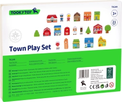 - Komplekti sisu: 11 hoonet (nt politsei, tuletõrjejaam, haigla, kool, raamatukogu, restoran, loomapood, küün, kellatorn ja 2 majakest)