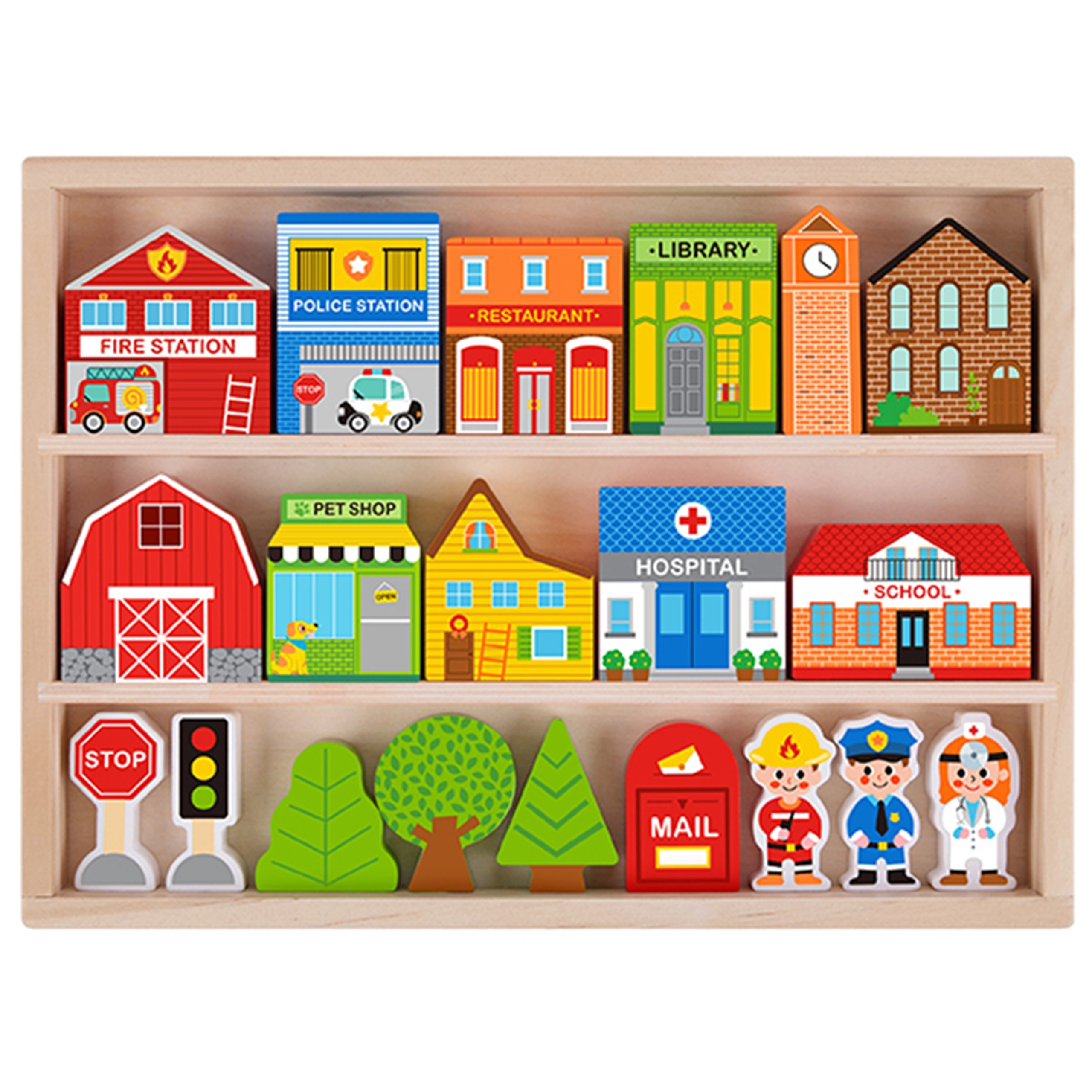 Looge toimekas linn haigla, kooli, raamatukogu ja tuletõrjedepoo ning laske lastel avastada tuletõrjuja, politseiniku ja arsti rolle. Komplekt sobib nii iseseisvaks kui ka ühiseks mänguks, arendab kujutlusvõimet ja õpetab loomulikul viisil kogukonna toimimist.