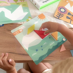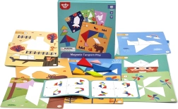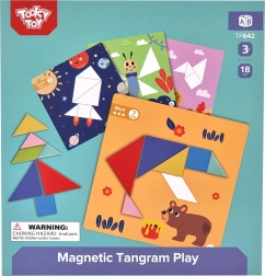 TOOKY TOY magnetilise tangramiga panevad lapsed hõlpsalt kokku kujundeid ja pilte ettevalmistatud alustel. Värvilised geomeetrilised tükid kinnituvad alusele, nii et nendega on mugav toimetada nii kodus kui ka reisil. Mäng arendab kujutlusvõimet, keskendumist ja iseseisvat ülesannete lahendamist.