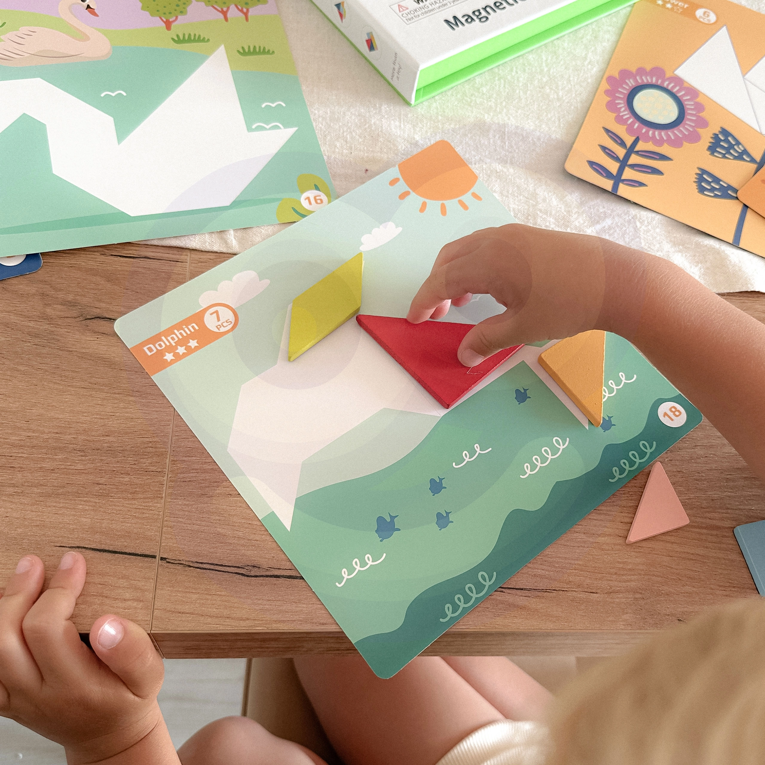 Lapsed ühendavad kolmnurki, ruute ja teisi tükke lõbusateks loomadeks. Nad õpivad loomulikul viisil ära tundma kujundeid, värve ja nendevahelisi seoseid.