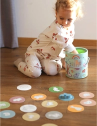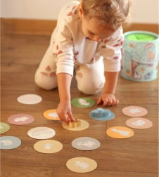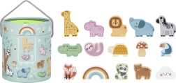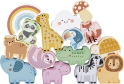 Komplekt sisaldab 15 puidust figuuri, sealhulgas loomakesi, vikerkaart, pilvekest ja seenekest mitmekülgseks ning harivaks mänguks.
