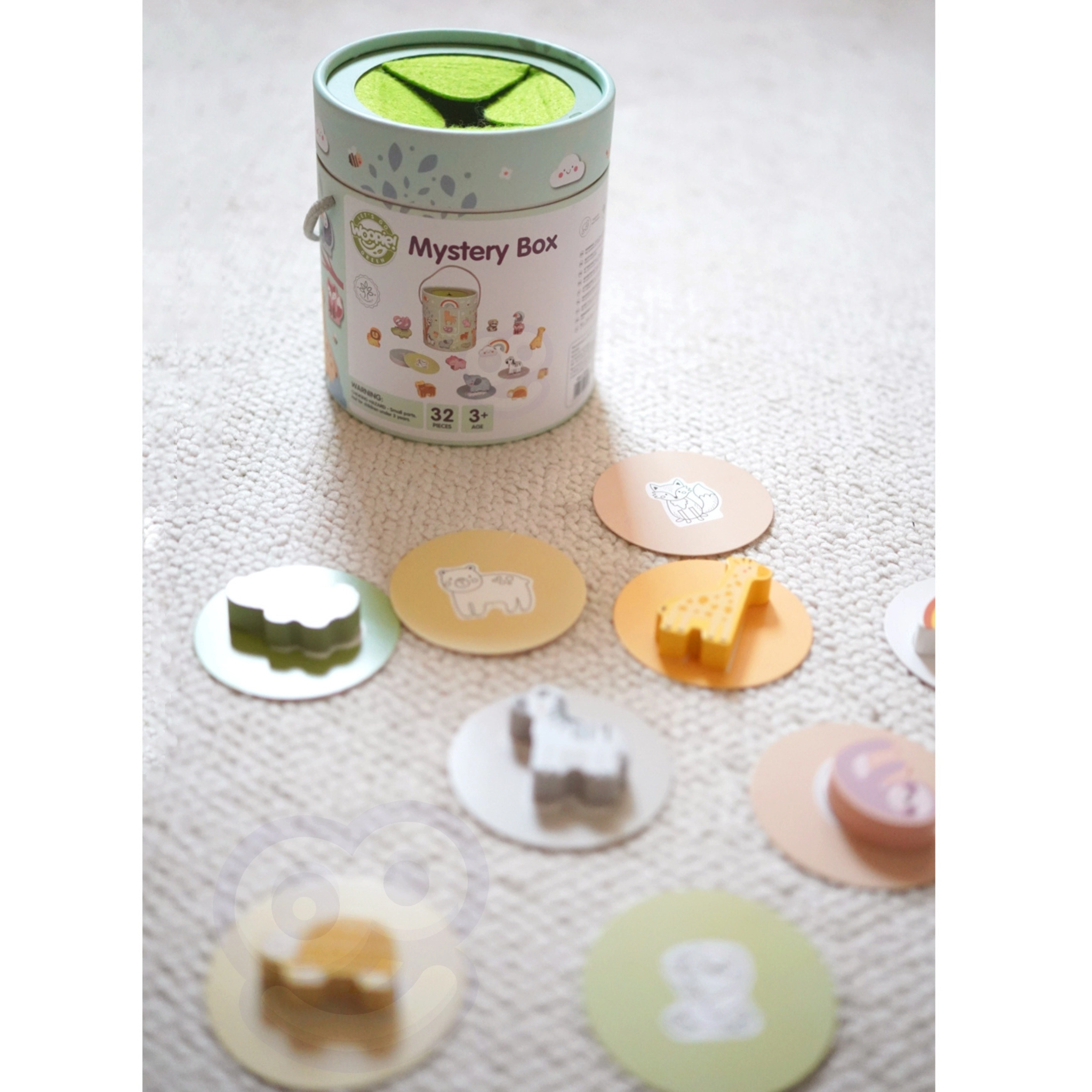 Mängus Salapärane Kast valivad lapsed ühe 15 kaardist ja püüavad puudutuse abil ära arvata, milline figuur on kastis peidus – nii õpivad nad kuju äratundmist. Mäng arendab puudutustaju, peenmotoorikat ja keskendumist. Komplekt pakub erinevaid loomingulisi mänguviise, nagu paaritamine, värvide õppimine, loomade nimetused ja tornide ehitamine.