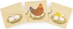 Tükid on valmistatud bukspuust ja kaetud mittetoksiliste värvidega, mis taluvad igapäevast mängu ning on ohutud ka kõige pisematele. Puslet kokku pannes harjutavad lapsed peenmotoorikat, tähelepanu ja piltidevaheliste seoste leidmist. Suurepärane nii ühismänguks vanemaga kui ka iseseisvaks avastamiseks.