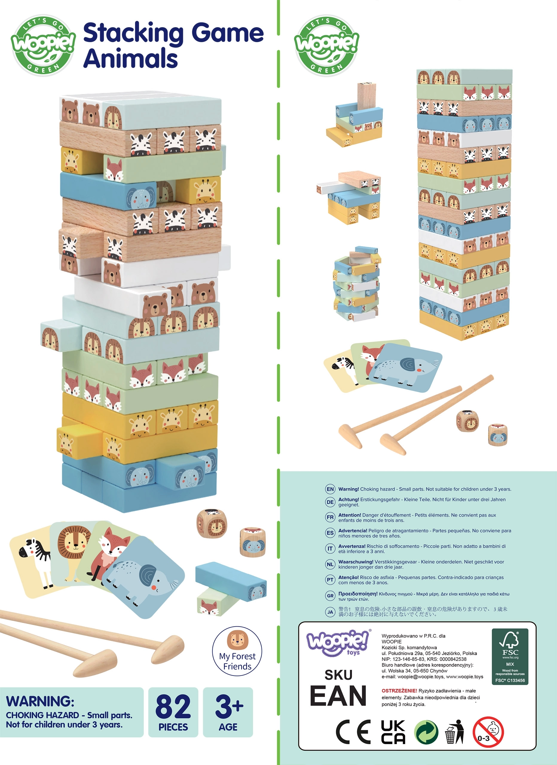 WOOPRIE kaubamärgi puidust mäng Värisev torn on suurepärane valik laste motoorika arendamiseks ja lõbusaks ajaveetmiseks! Komplekt sisaldab 82 vastupidavast puidust detaili pastellvärvides ja loomakleepsudega. Suurepärane strateegilise mõtlemise ja keskendumisvõime treenimiseks.