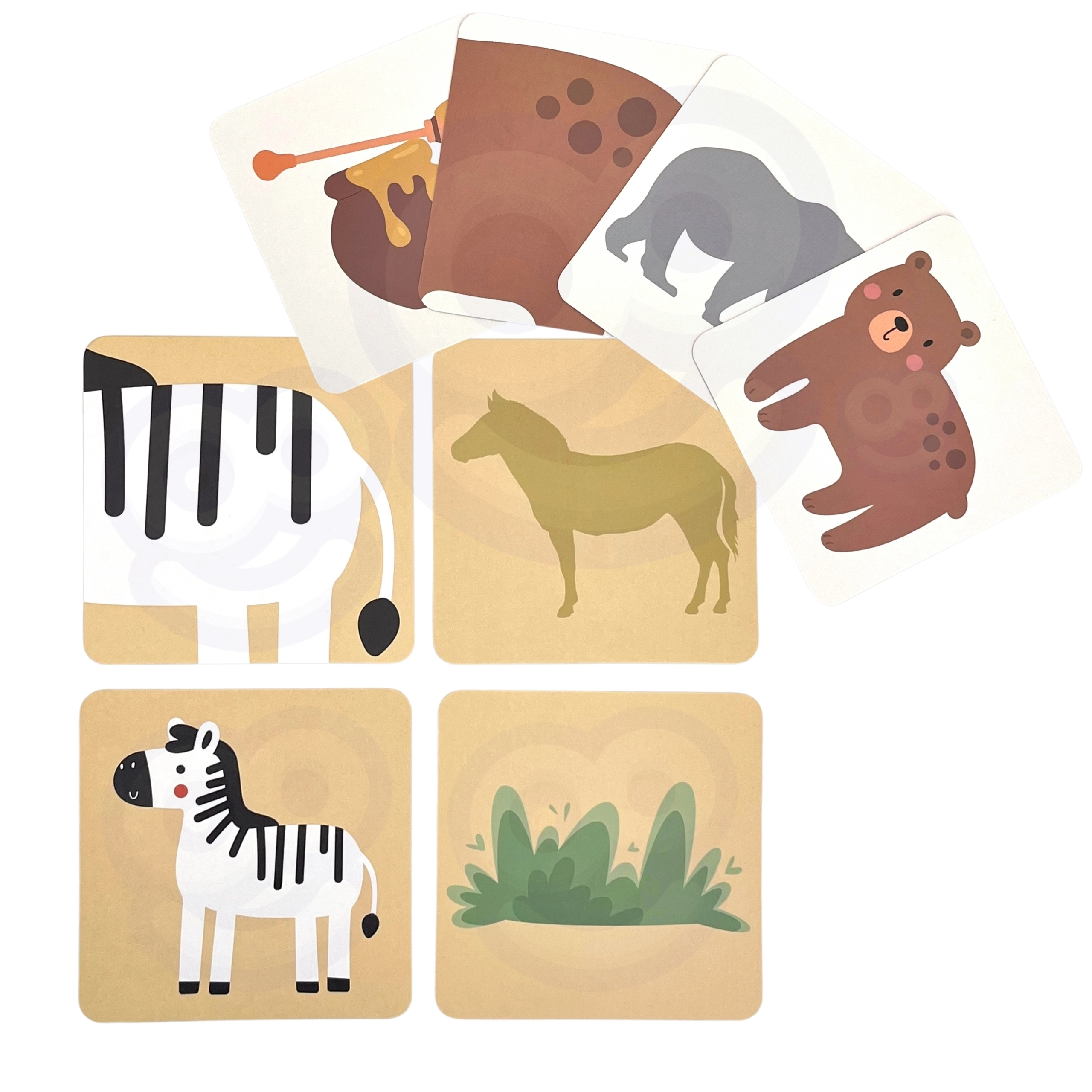 - Mäng kaartidega: mängijad peavad sobitama kaartidel olevad loomad vastavate piltide või siluettidega.