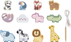 See armas komplekt sisaldab 11 värvilist puidust looma ja lõbusat pilvekest, mida lapsed saavad hõlpsalt lükata kaasaolevale nöörile puidust otsikuga. Igal detailil on täpsed läbijooksuavad, mis soodustavad kannatlikkust ja keskendumist. Pastelsed toonid ja meeldiv disain ärgitavad fantaasiat ning muudavad õppimise loomulikuks osaks mängust.