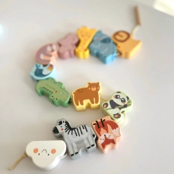 Puidust loomade nöörile lükkimine treenib loomulikul viisil haaret, silma-käe koordineerimist ja liigutuste täpsust – ideaalne ettevalmistus joonistamiseks ja kirjutamiseks.