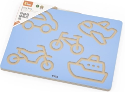 Avastage lõbus tee esimesteni tõmmete ja tähtedeni. Puidust tahvel VIGA sõidukimotiividega suunab lapsi sujuvatele käeliigutustele, õigel surveastmel ja tõmbe suunal. Harjutamine toimub loomuliku mänguna – soontest ülejoonistamine toetab keskendumist ja kindlust käes.