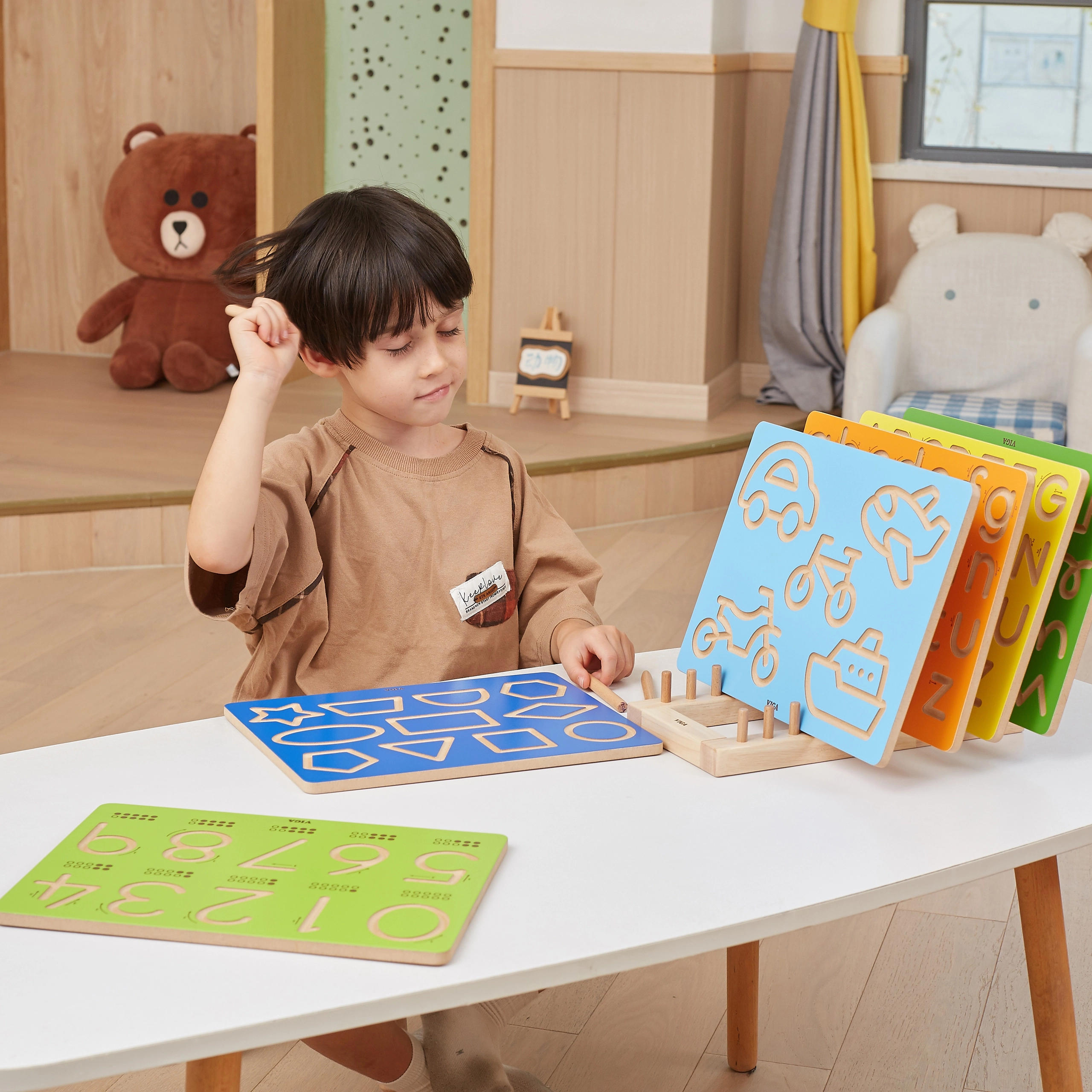 Ergonomiliselt freesitud jooned pakuvad taktiilset tagasisidet, nii et laps tunneb õiget rada ka ilma varasema kogemuseta. Kompaktne ja vastupidav teostus sobib koju, lasteaedadesse ja lastenurkadesse.