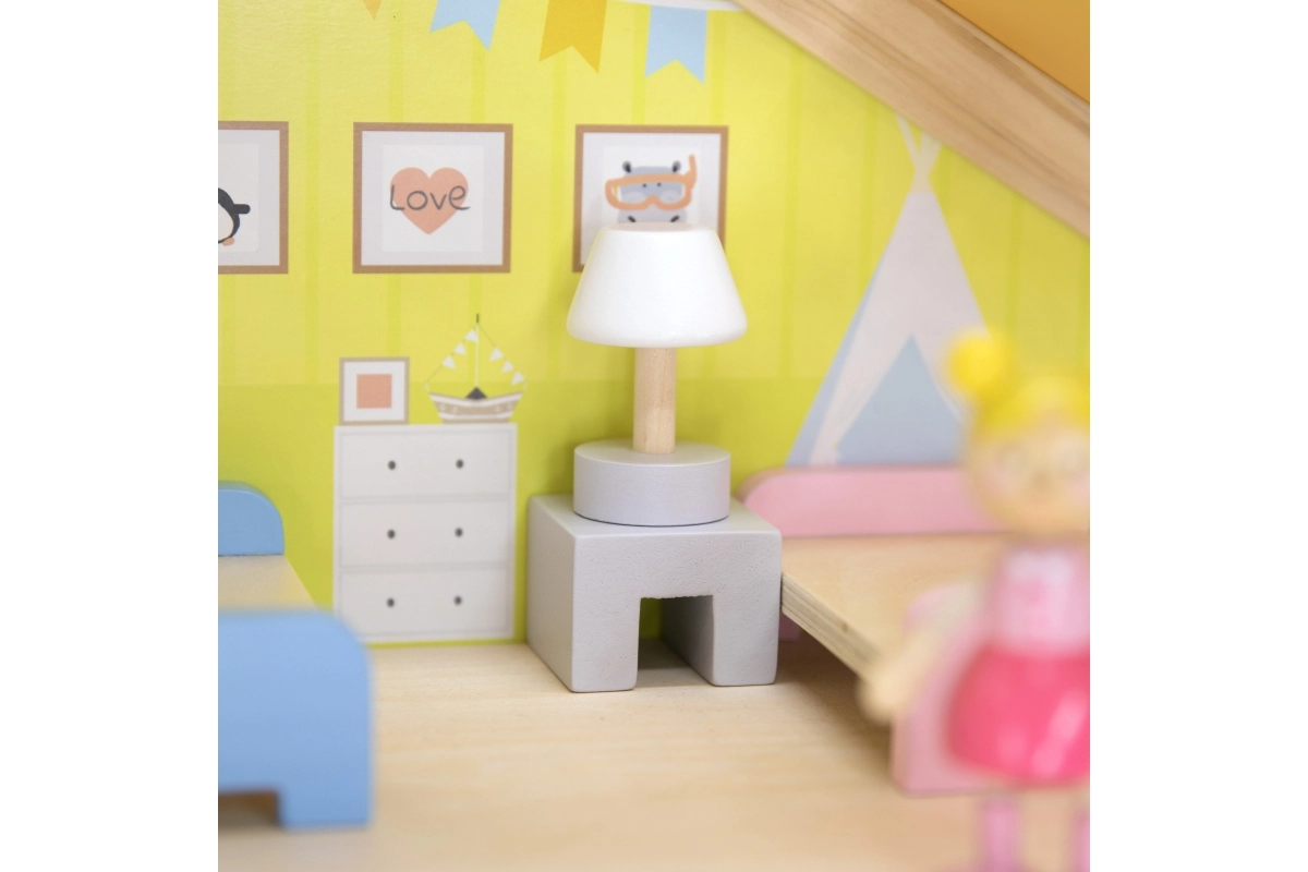 Tänu vastupidavale puidust konstruktsioonile ja siledatele servadele on mäng turvaline ja mõnus. Kuni 32 elementi arendavad kujutlusvõimet, peenmotoorikat ja sotsiaalseid oskusi. Ideaalne kuni 10 cm kõrgustele nukkudele.