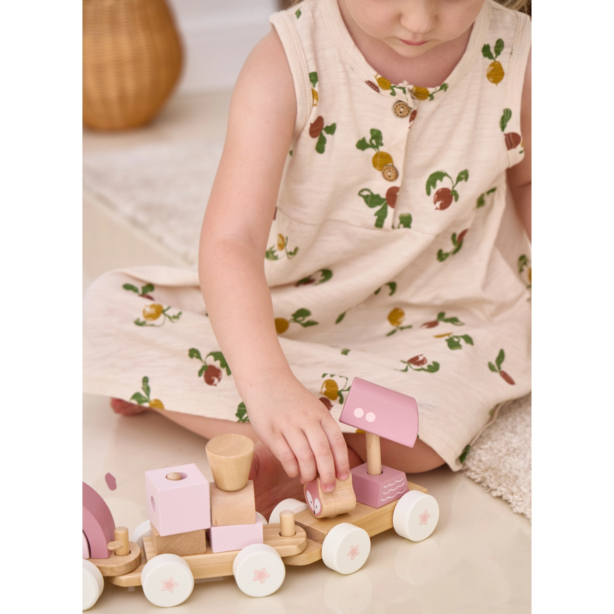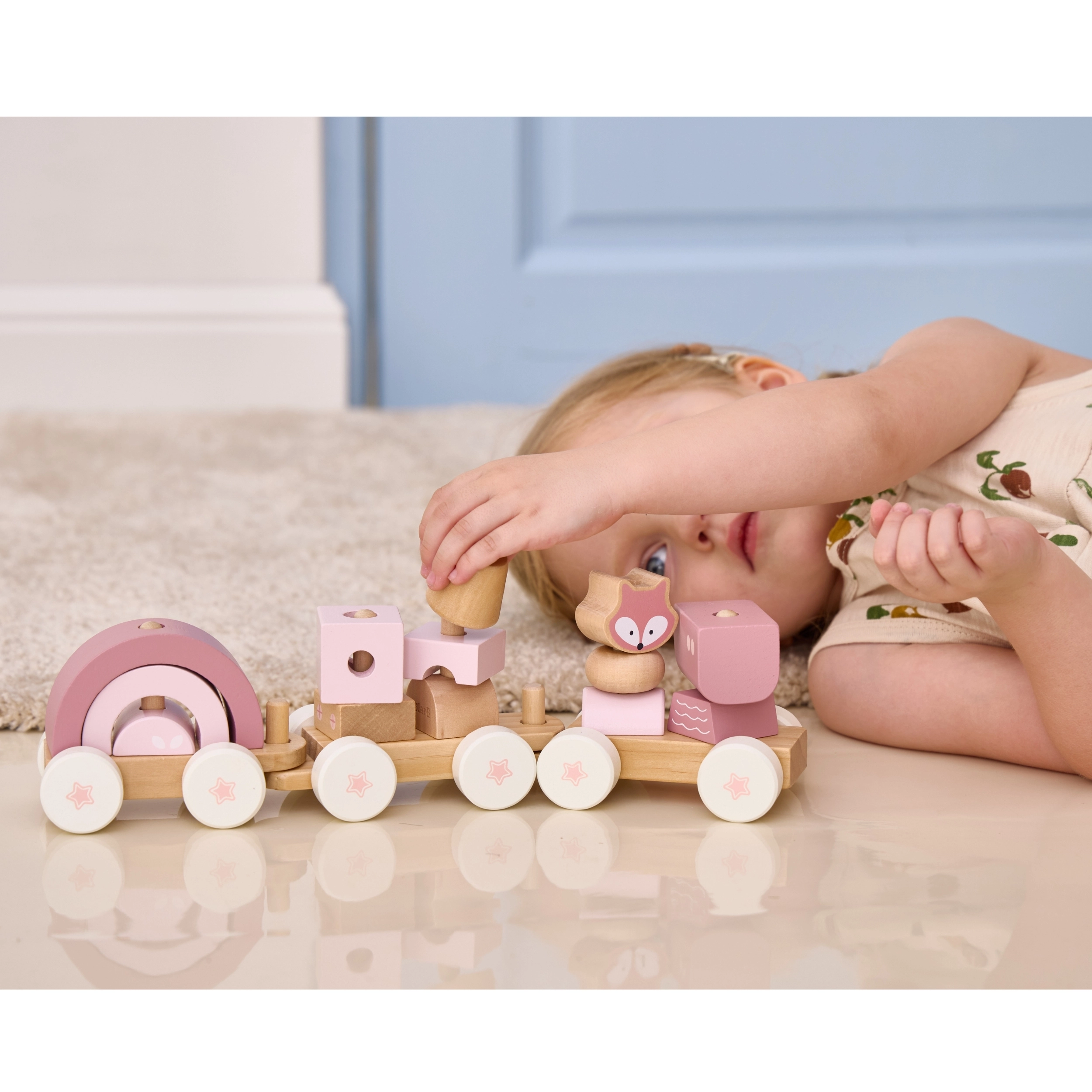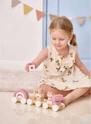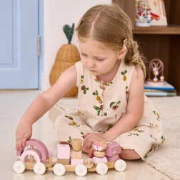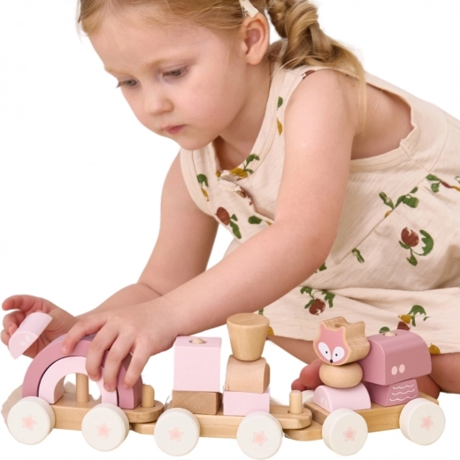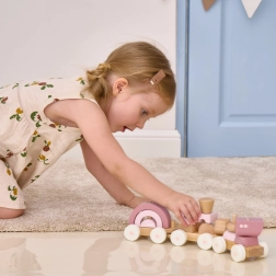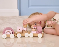 Armas roosa puidust rong kaubamärgi Viga sarjast PolarB rõõmustab iga last. Komplektis on 3 vagunit ja 14 klotsi eri kujudes, mida saab vabalt kombineerida ja laduda. Tänu õrnadele pastelltoonidele, turvalisele puidust teostusele ja meeldivatele vormidele on see ideaalne peenmotoorika, koordinatsiooni ja loovuse arendamiseks alates 18. elukuust.
