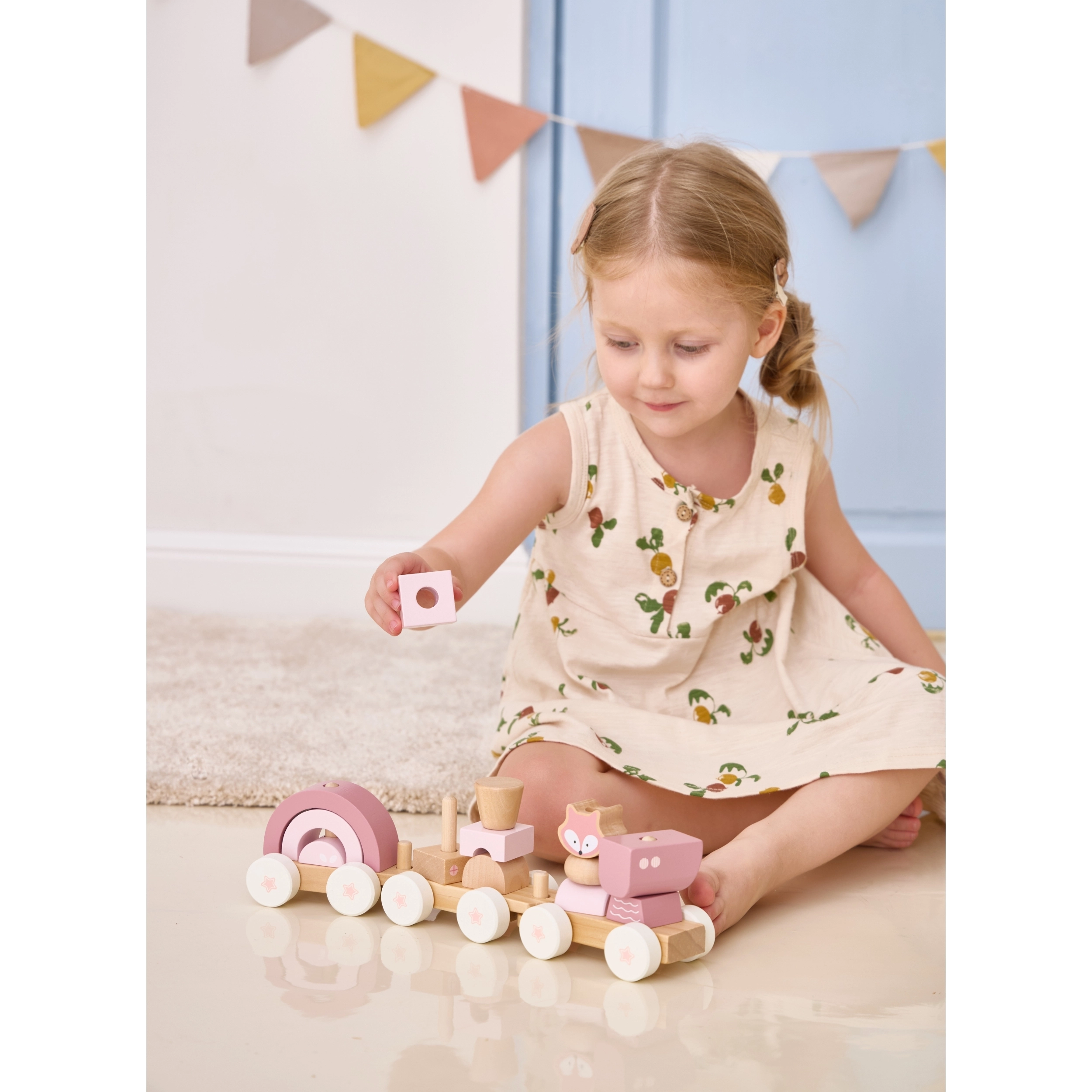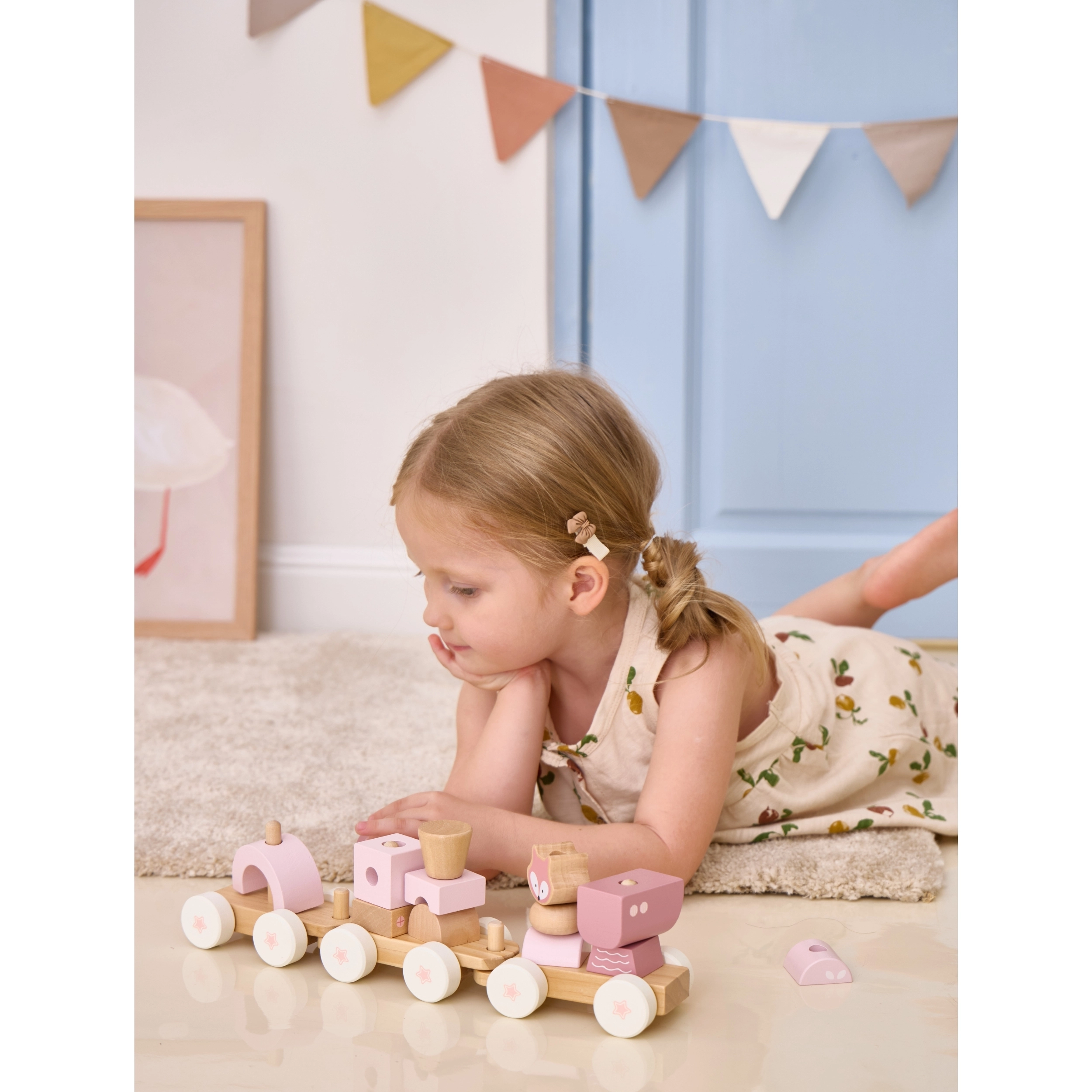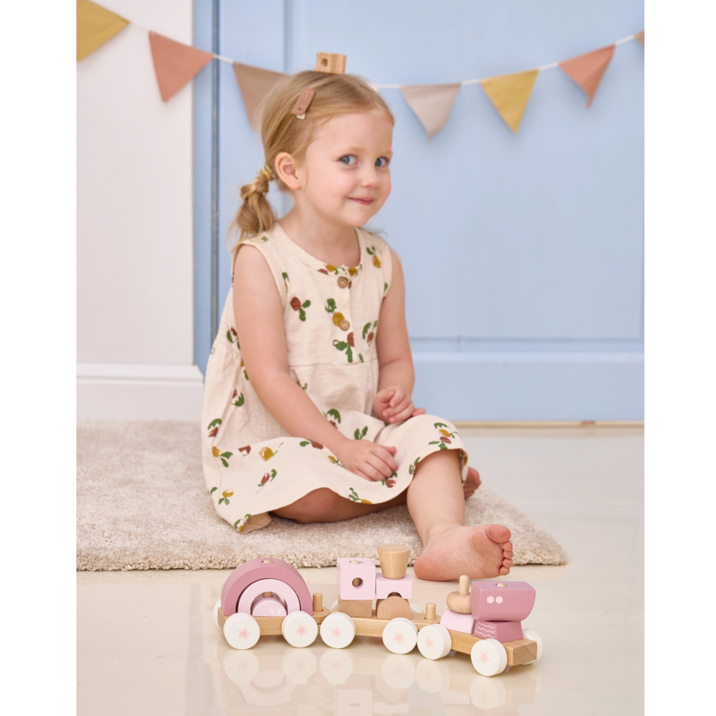 Armas roosa puidust rong kaubamärgi Viga sarjast PolarB rõõmustab iga last. Komplektis on 3 vagunit ja 14 klotsi eri kujudes, mida saab vabalt kombineerida ja laduda. Tänu õrnadele pastelltoonidele, turvalisele puidust teostusele ja meeldivatele vormidele on see ideaalne peenmotoorika, koordinatsiooni ja loovuse arendamiseks alates 18. elukuust.