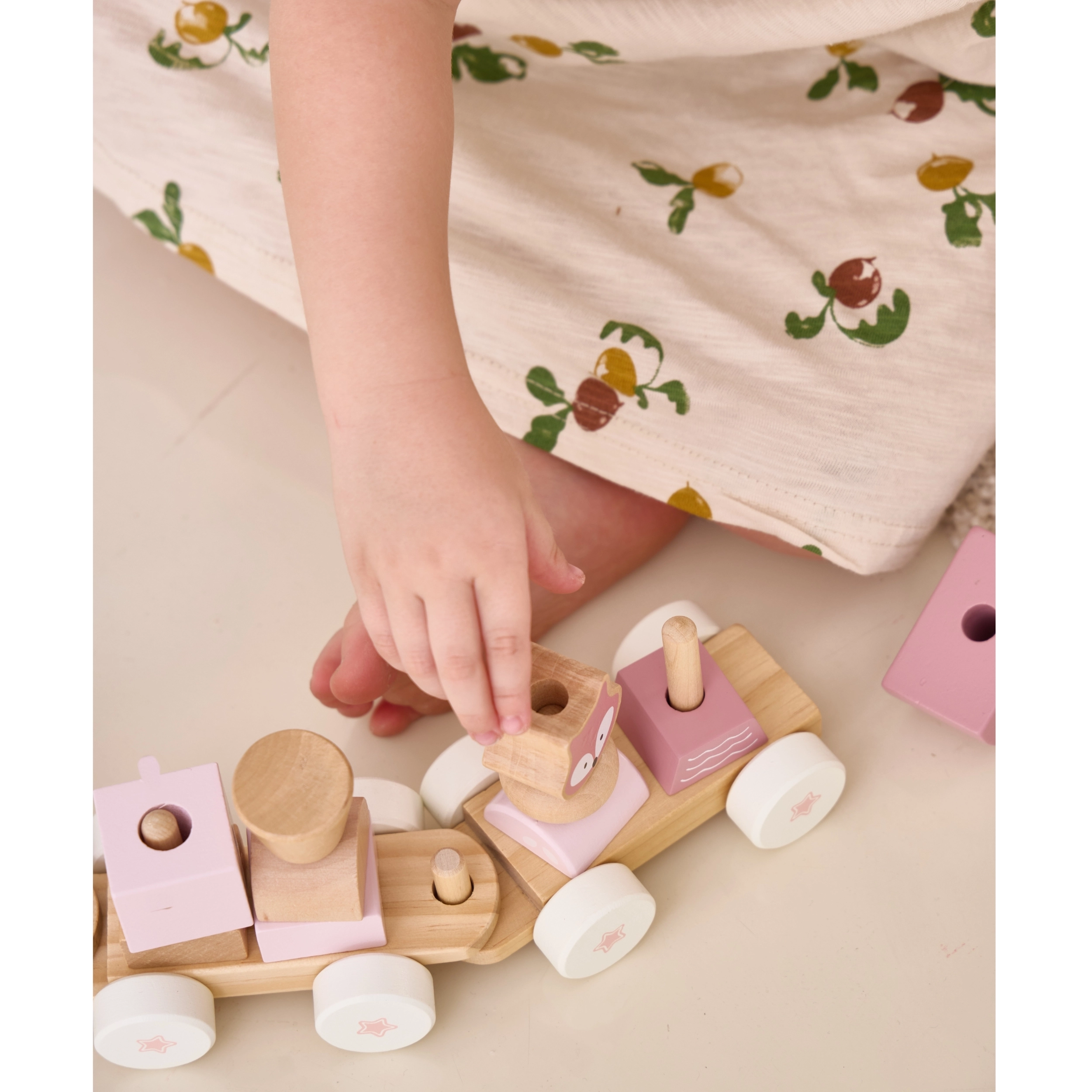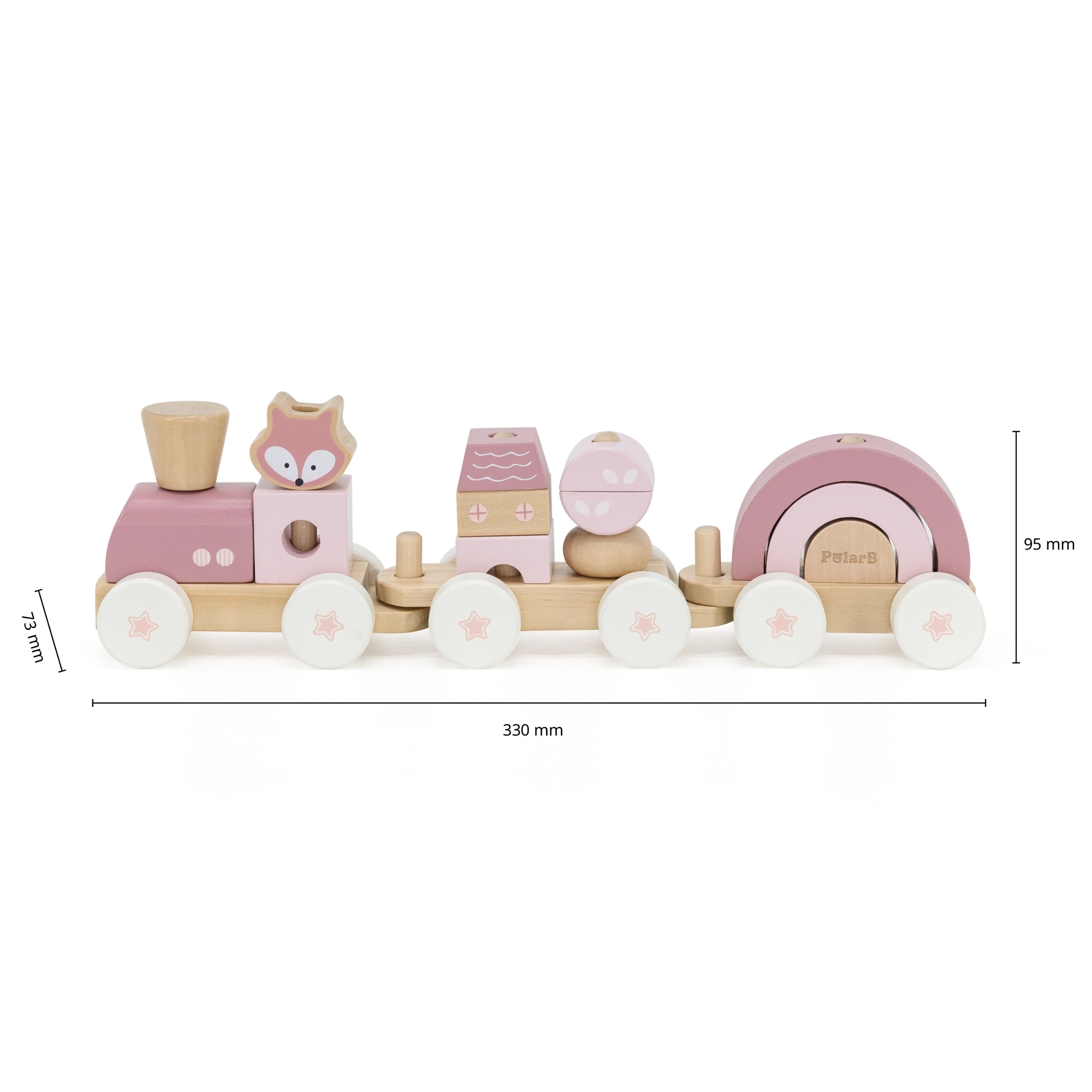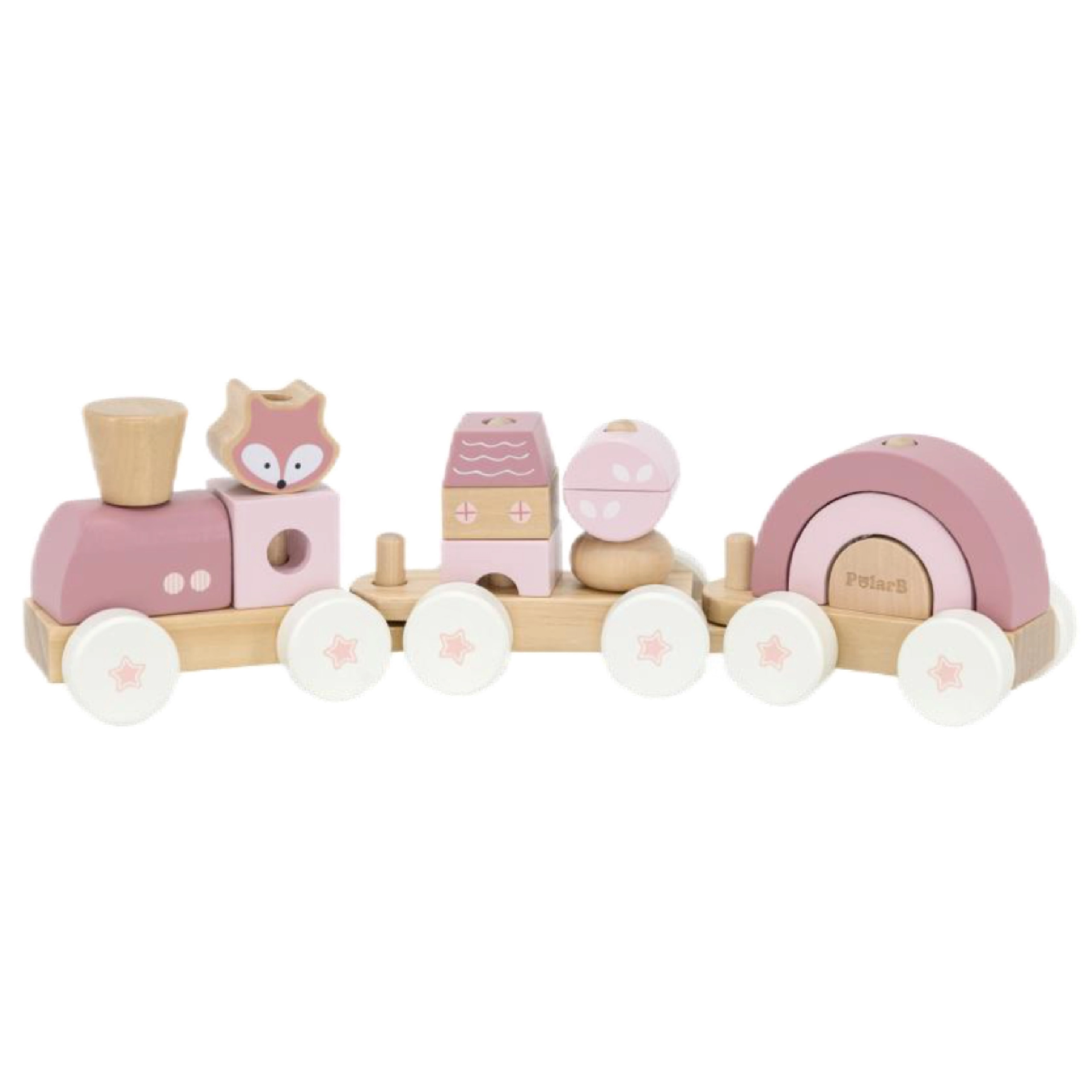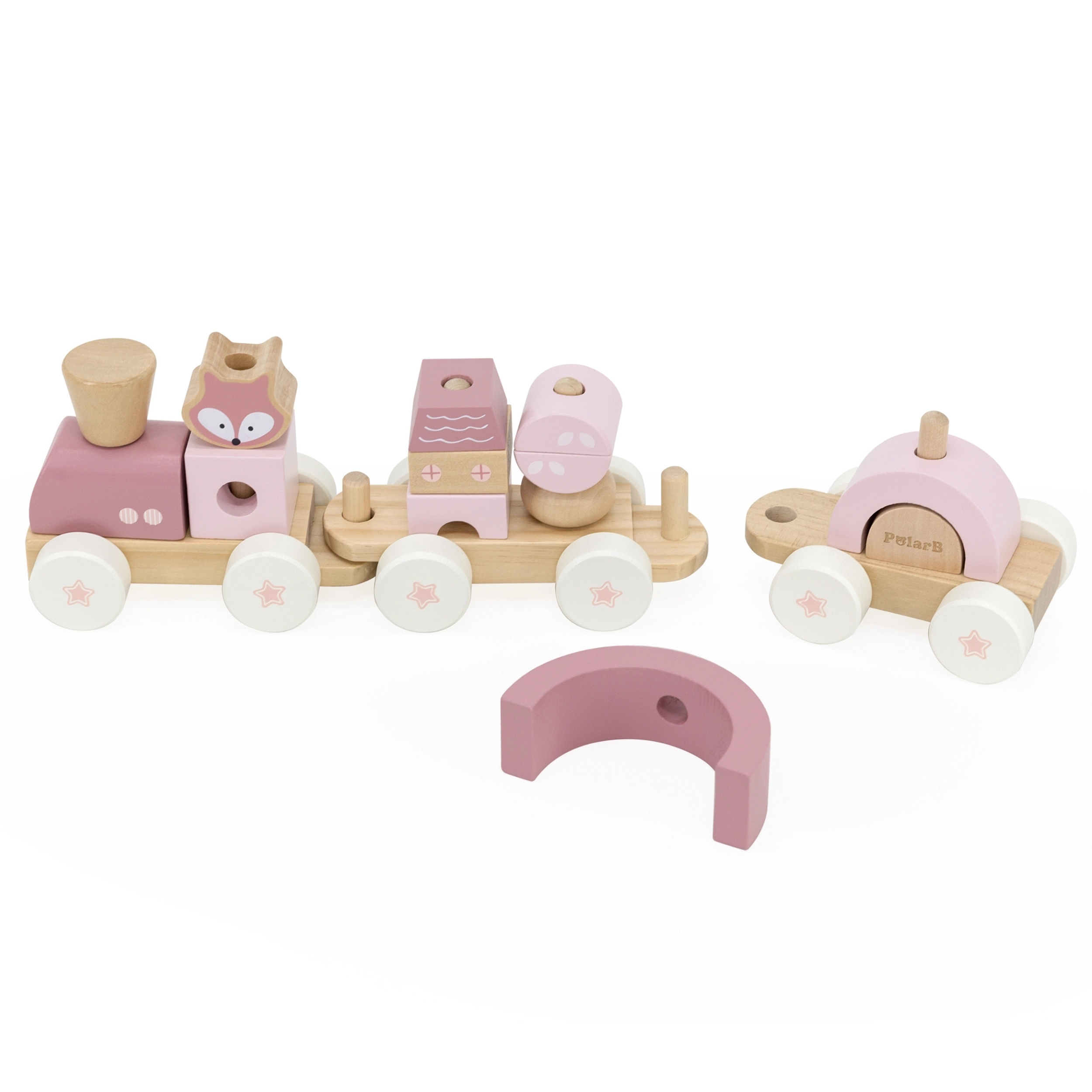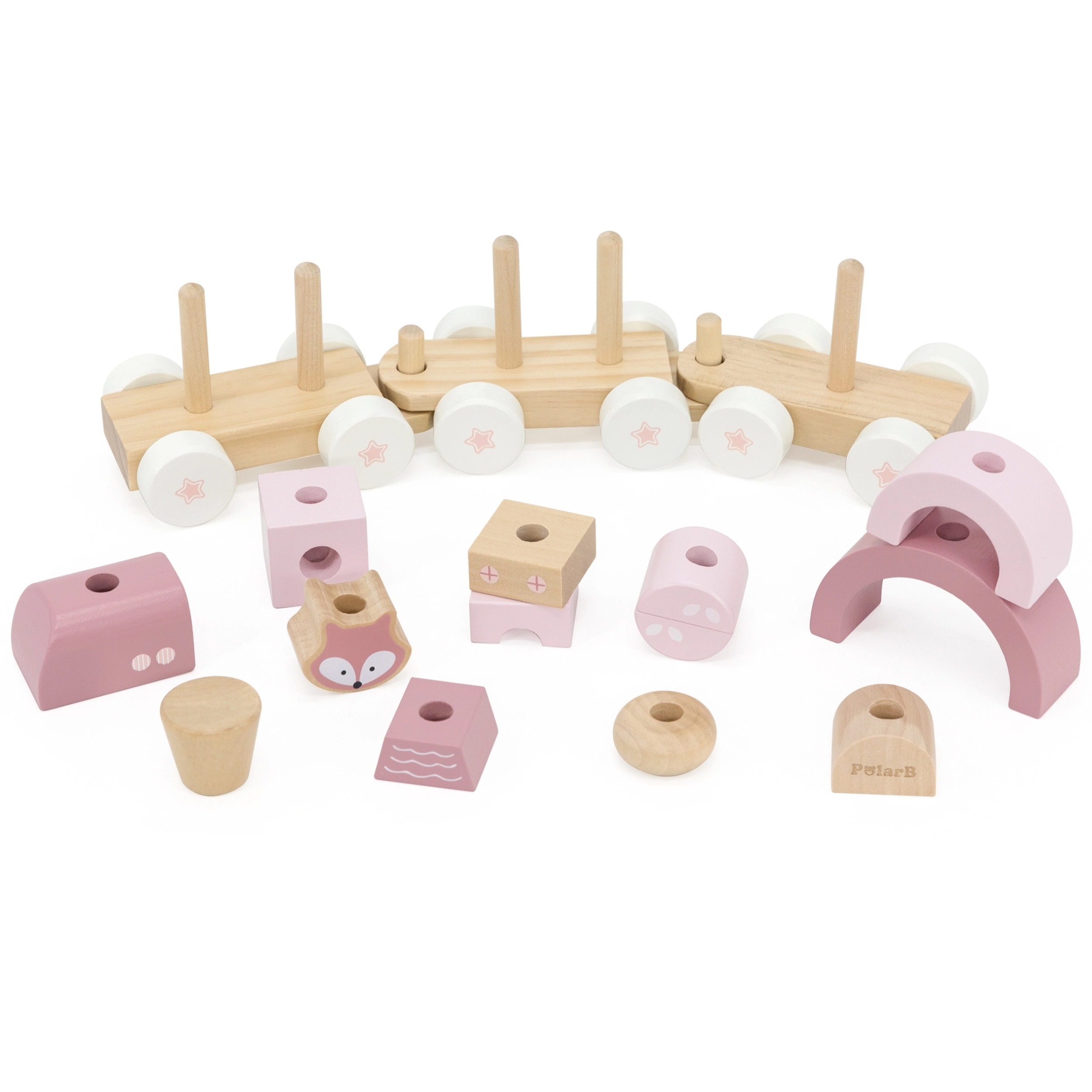 PolarB puidust rong õrnades roosades ja naturaalsetes toonides pakub lõputuid mänguvõimalusi. Lapsed saavad ühendada vaguneid, ehitada ainulaadseid klotsikombinatsioone või mängida üksikosadega eraldi. Praktilised vormid sobivad hästi väikestesse kätesse ja toetavad osavust ning kujutlusvõimet.