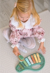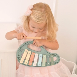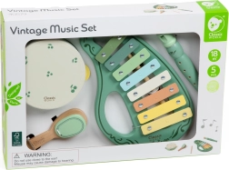 See stiilne vintage-komplekt sisaldab kõike, mida väikesed muusikasõbrad vajavad helimaailma avastamiseks: ksülofon, tamburiin, plokkflööt, kastanjett ja pulk. Puidu ja metalli kooslus annab pillidele meeldiva kõla ning peab vastu igapäevasele mängimisele.