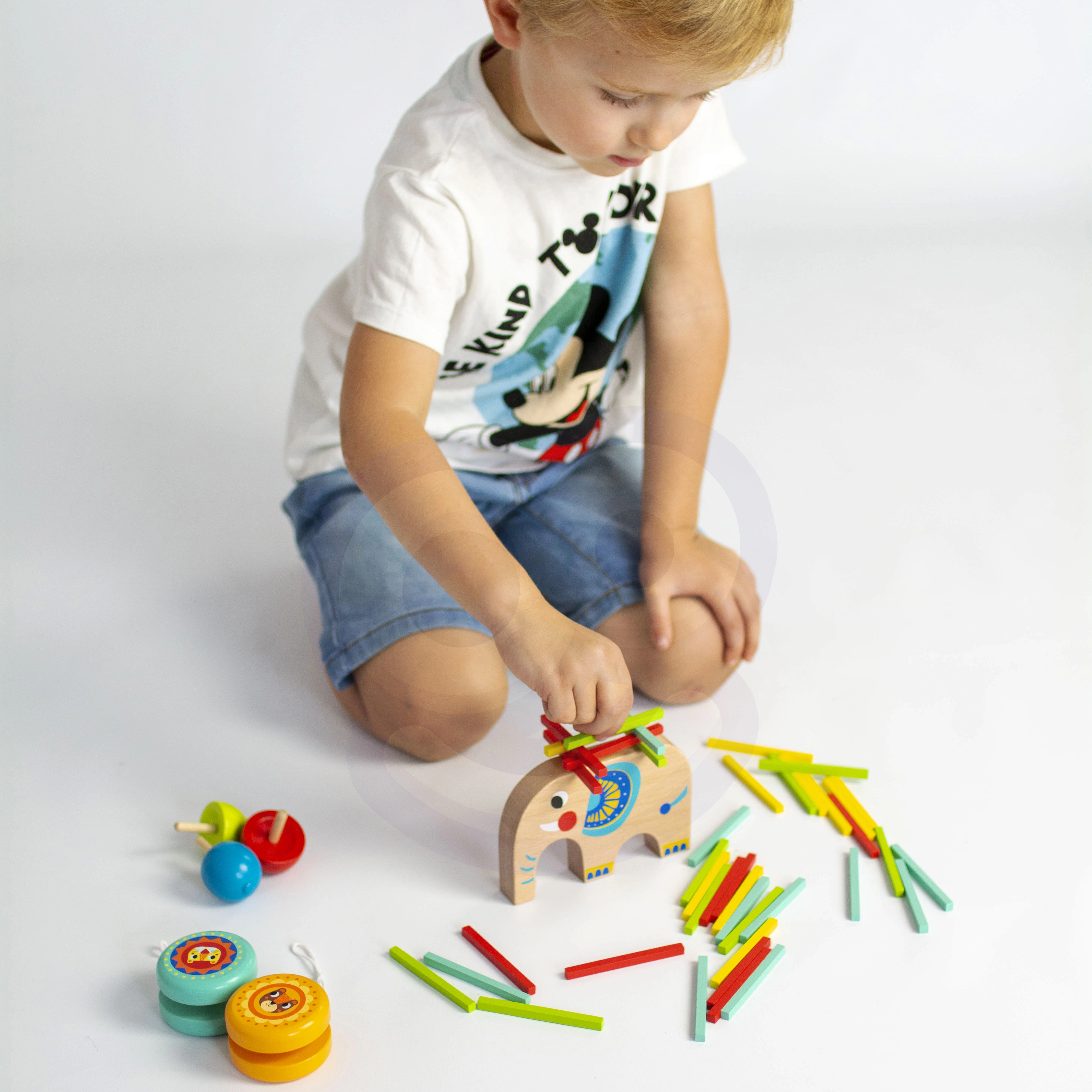 - Elevant – tasakaalualus, värvilised pulgad (mikado/ehitamine), 2× jojo, 1× vurr