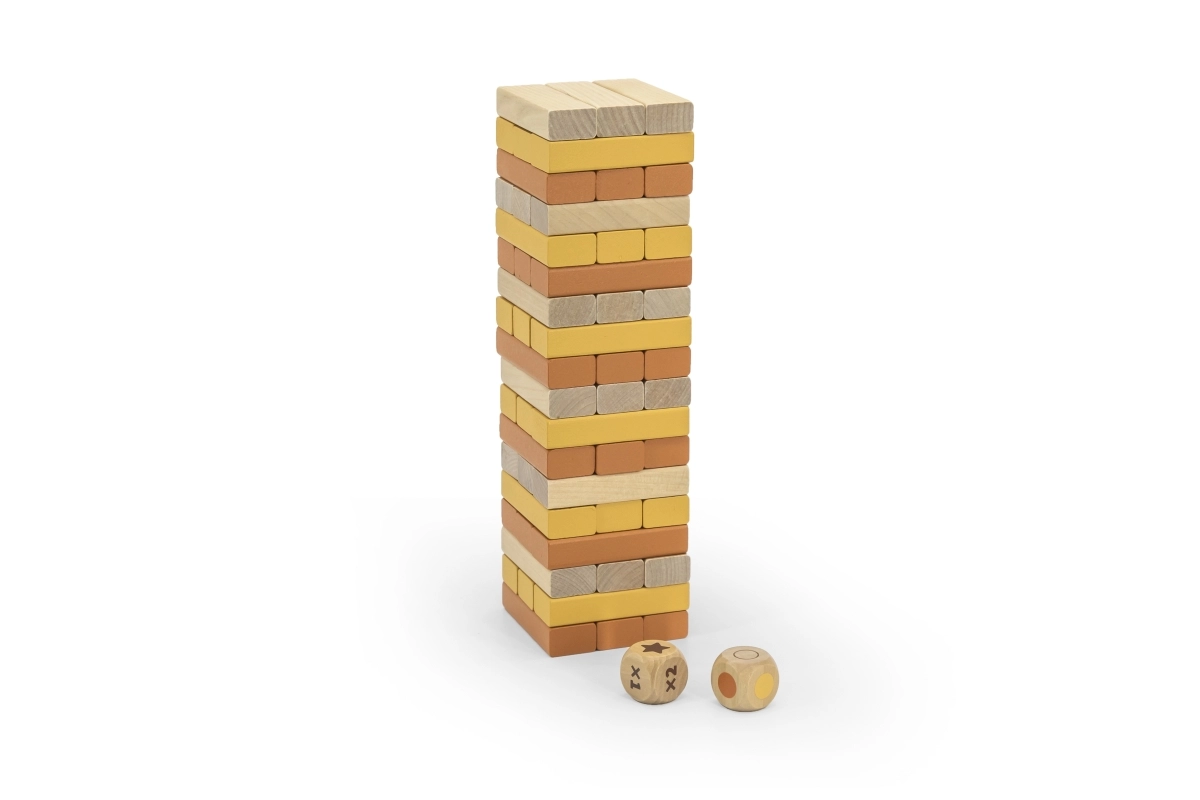 Ehita alustorn, tõmba ettevaatlikult välja üks klots korraga ja aseta see tippu. Tänu värvilistele klotsidele saab lisada juhuslikkuse elemendi – veeretus määrab, mis värvi klotsi pead eemaldama. Mäng sobib suurepäraselt lastele alates 3. eluaastast ning ka täiskasvanutele, pakkudes põnevat meelelahutust, mis treenib kannatlikkust ja strateegiat.