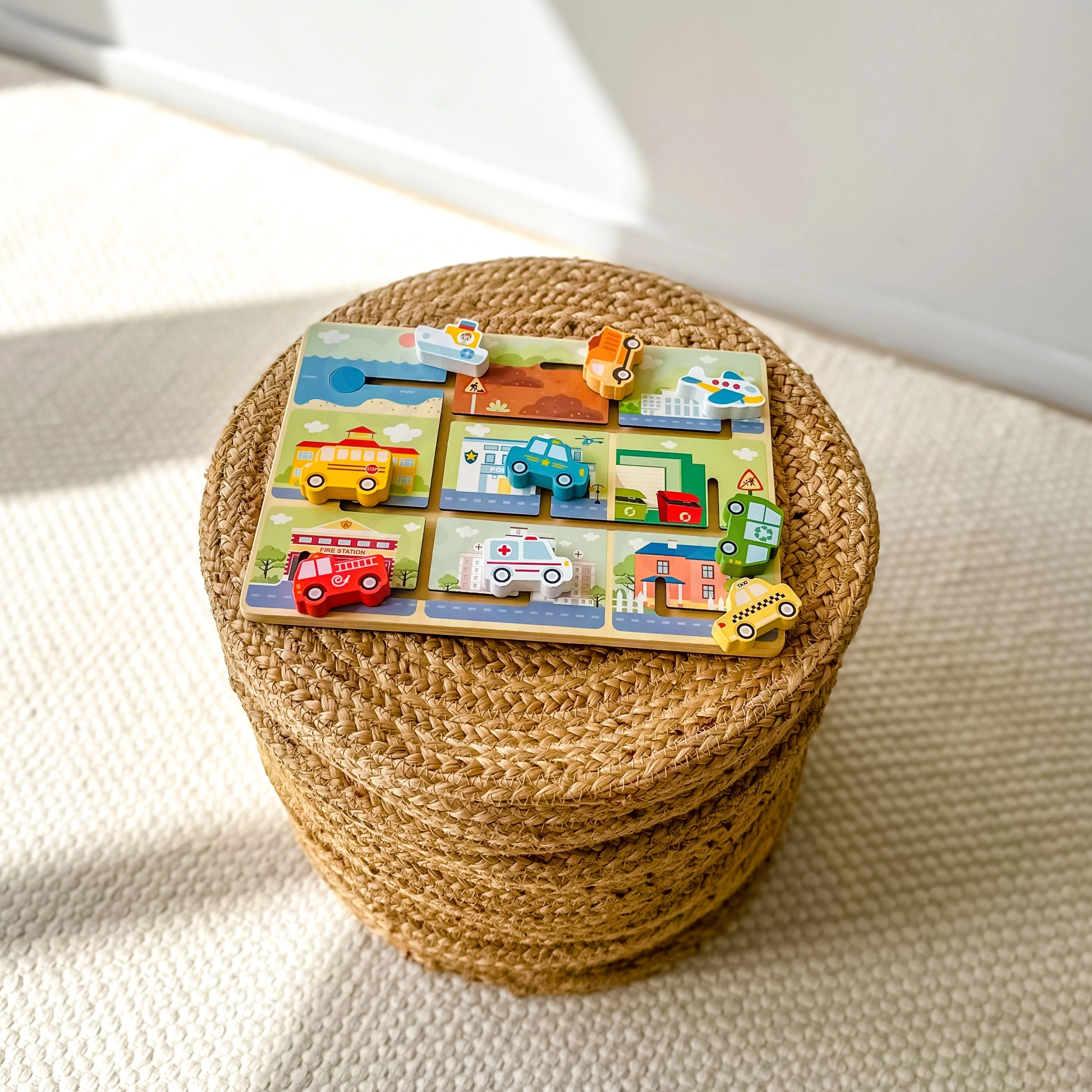 Mäng arendab loomulikult peenmotoorikat, kannatlikkust ja probleemilahendusoskust. Temaatilised stseenid ja erksad toonid toetavad kujundite ja värvide tajumist ning sõnavara – lapsed omandavad hõlpsalt sõidukite nimetused ja nende rolli linnas.