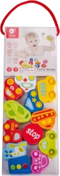 Värvilised sõidukid ja liiklusmärgid tutvustavad lastele teede maailma. Helmete järjestamist harjutades õpitakse värve, vorme ning liikluse põhireegleid.