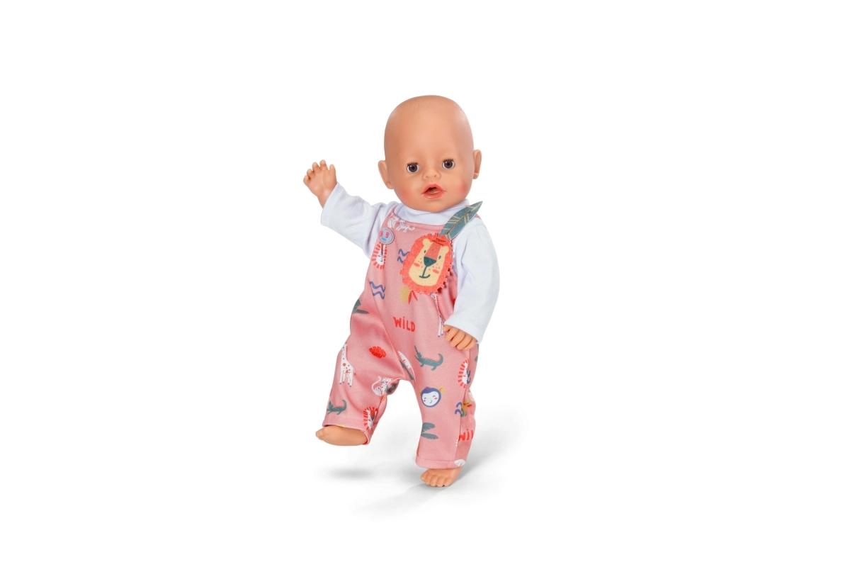 Paku oma nukule looduse stiili! See BABY born Džungel komplekt ühendab mugavuse ja mängulise disaini – roosad traksis sipukad lõbusate loomamotiivide ja õlakul paikneva nääriusega on täiendatud lihtsa valge pika varrukaga särgiga, mis on praktiliselt sipukate külge õmmeldud.