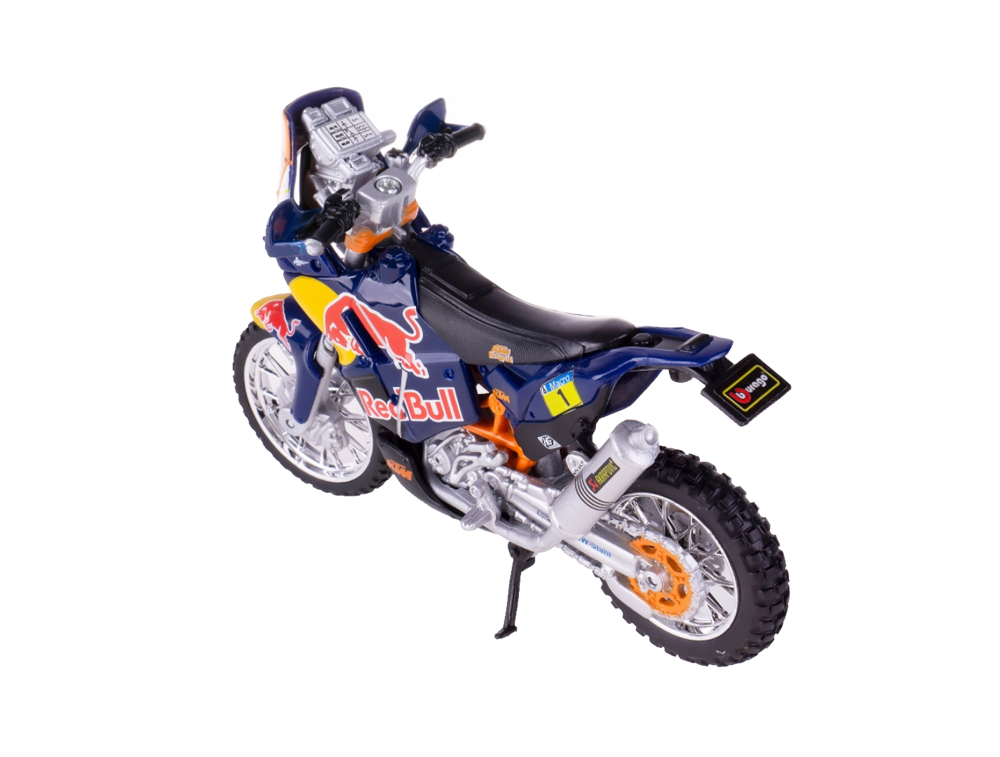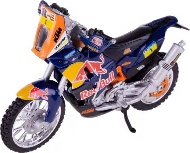 Avastage täpne koopia võistlusspetsiaalist Red Bull KTM Factory Racing legendaarse Dakari ralli jaoks. Bburago 1:18 mõõtkavas mudel avaldab muljet kvaliteetse metallkere, peente plastdetailide ja meeskonna autentse värvilahendusega.